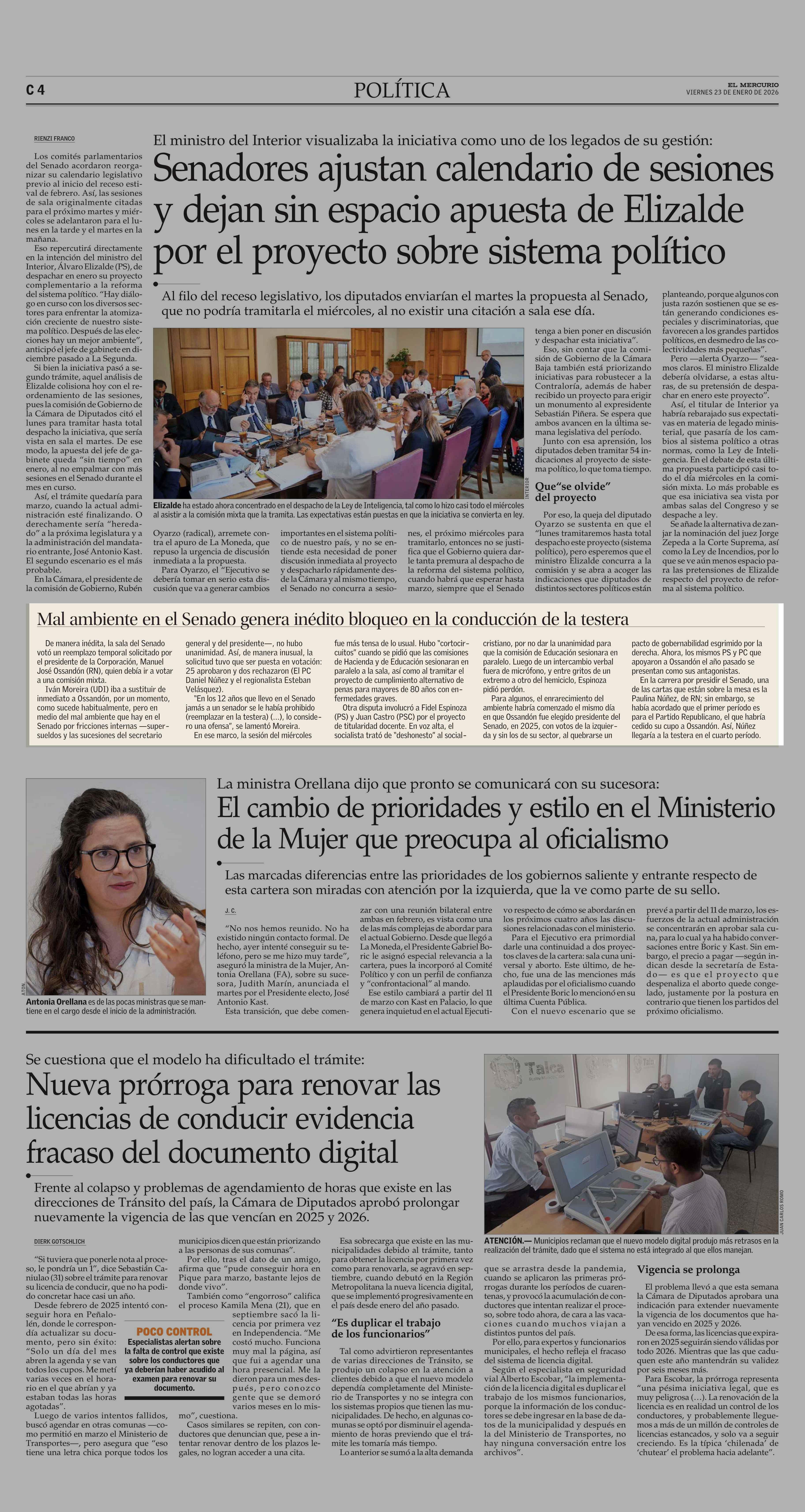 Mal ambiente en el Senado genera inédito bloqueo en la conducción de la testera 23-01-2026 El Mercurio |