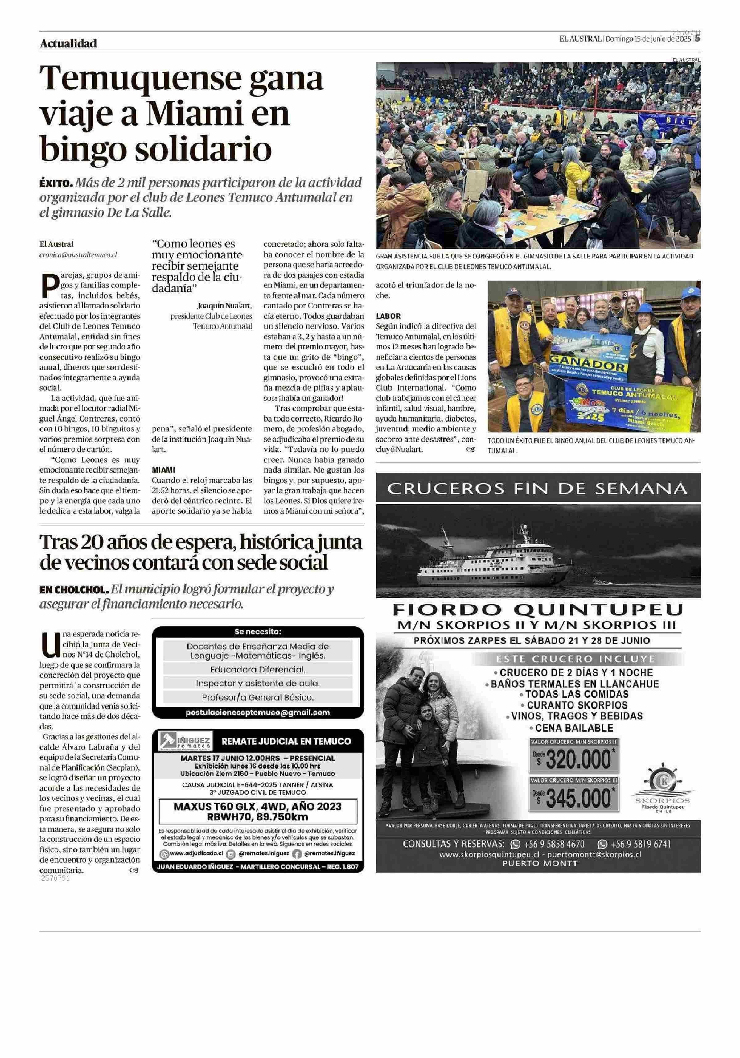 Fuente: El Austral de la Araucanía (El Austral de la Araucanía) Página(s): 5