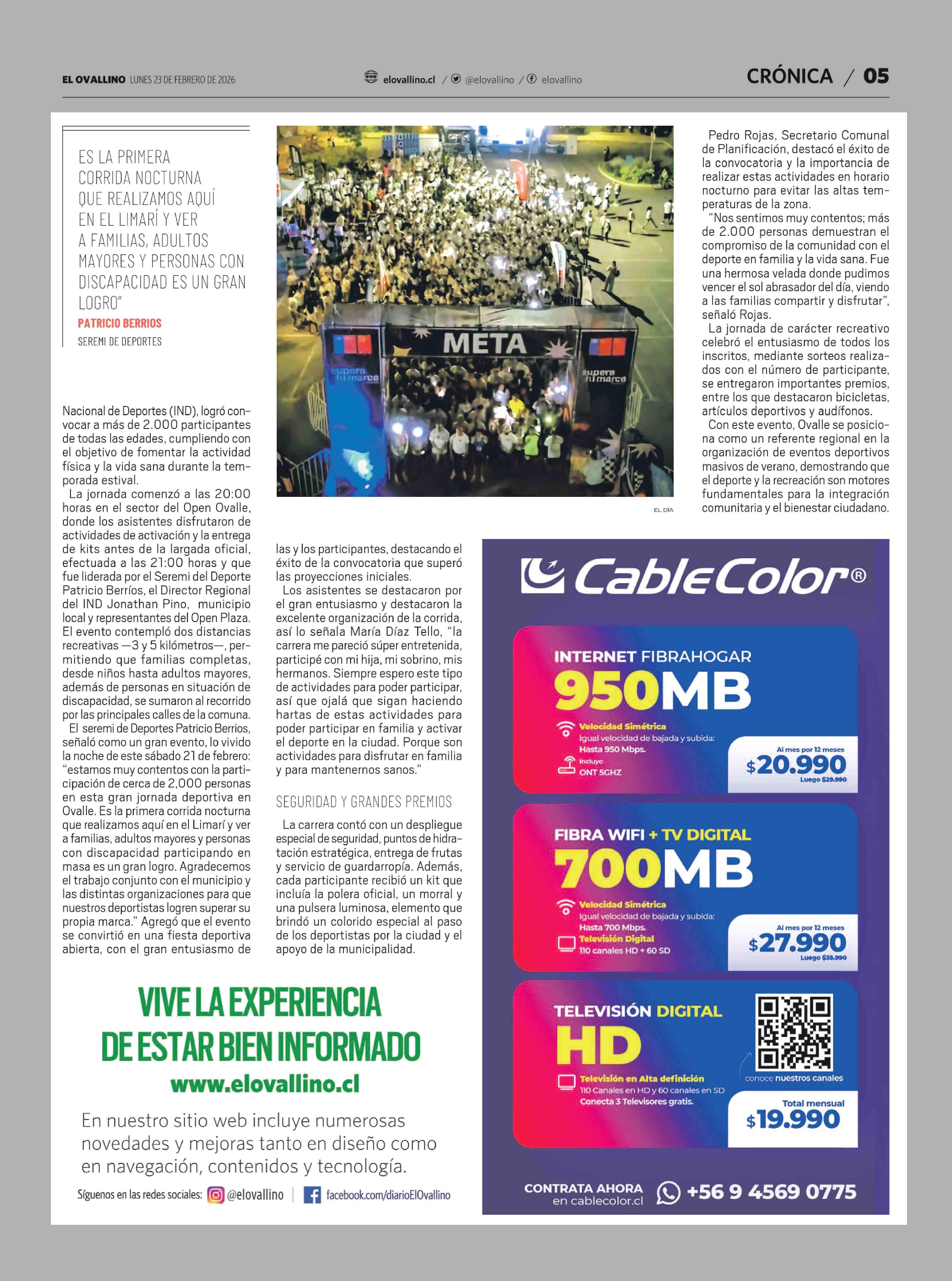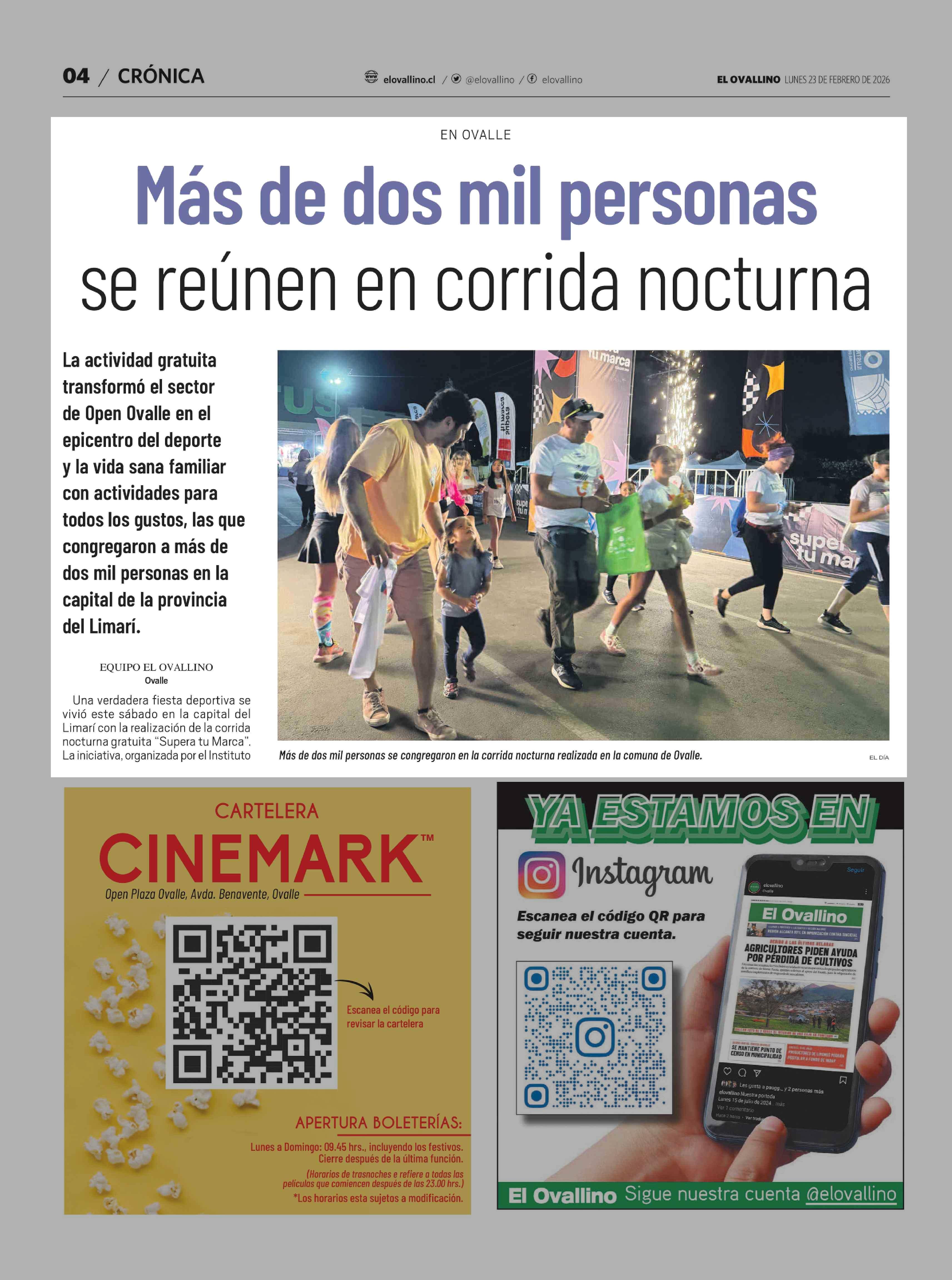 Más de dos mil personas se reúnen en corrida nocturna 23-02-2026 El Ovallino |