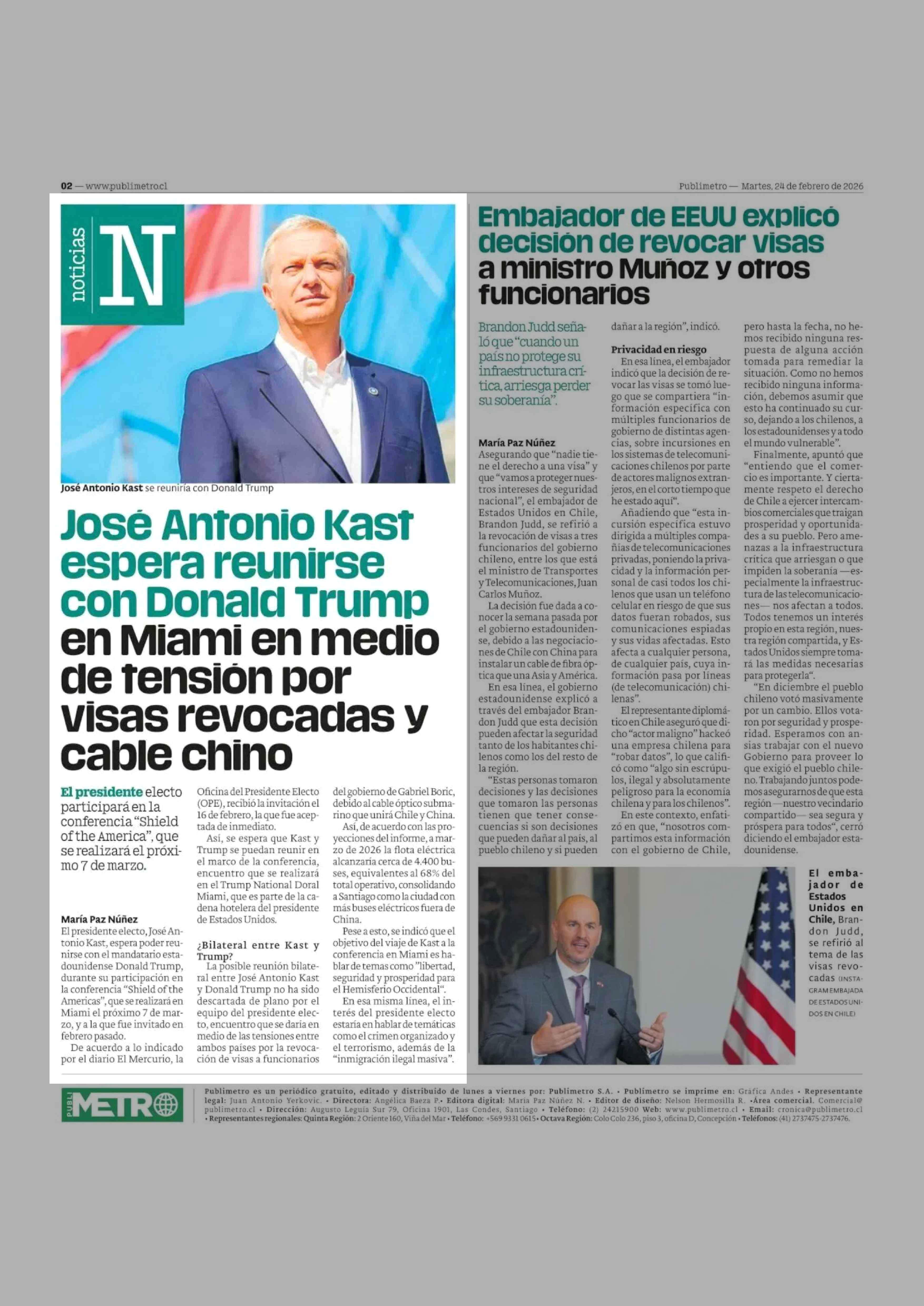 Título: José Antonio Kast espera reunirse con Donald Trump en Miami en medio de tension por visas revocadas y cable chino