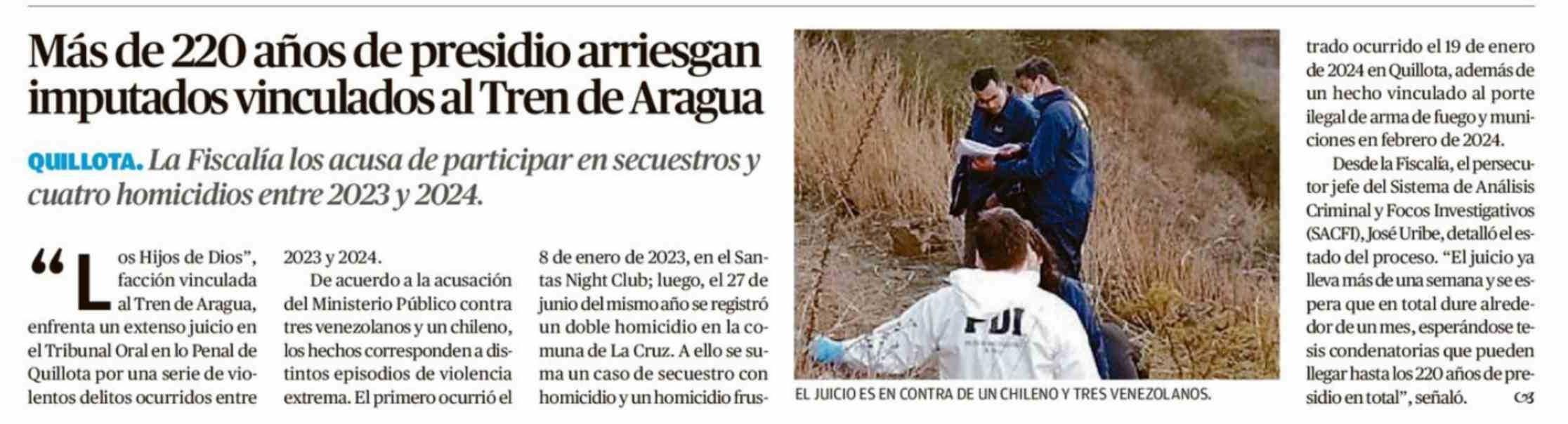Título: Más de 220 años de presidio arriesgan imputados vinculados al Tren de Aragua