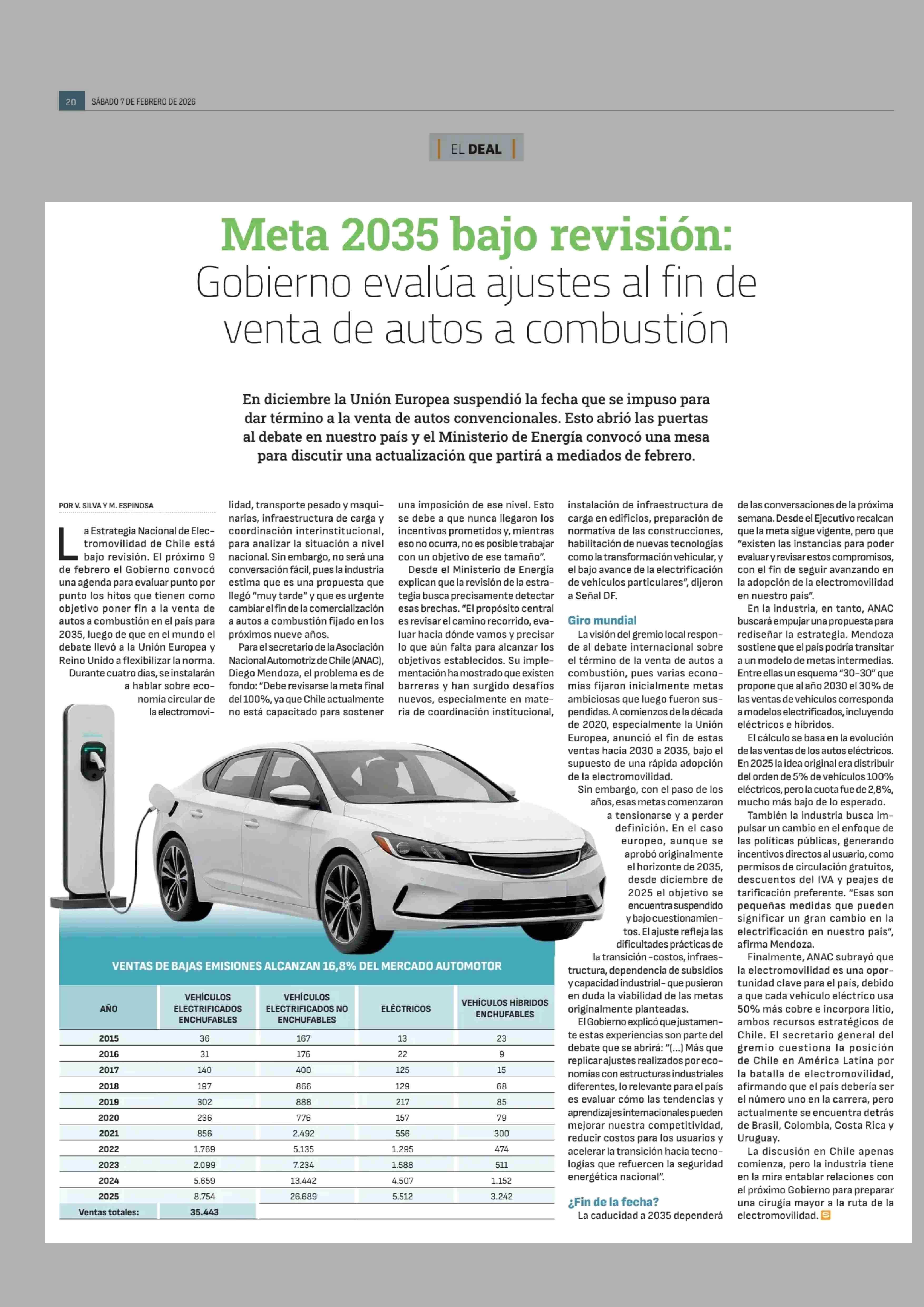 Meta 2035 bajo revisión: Gobierno evalúa ajustes al fin de venta de autos a combustión 07-02-2026 Diario Financiero |