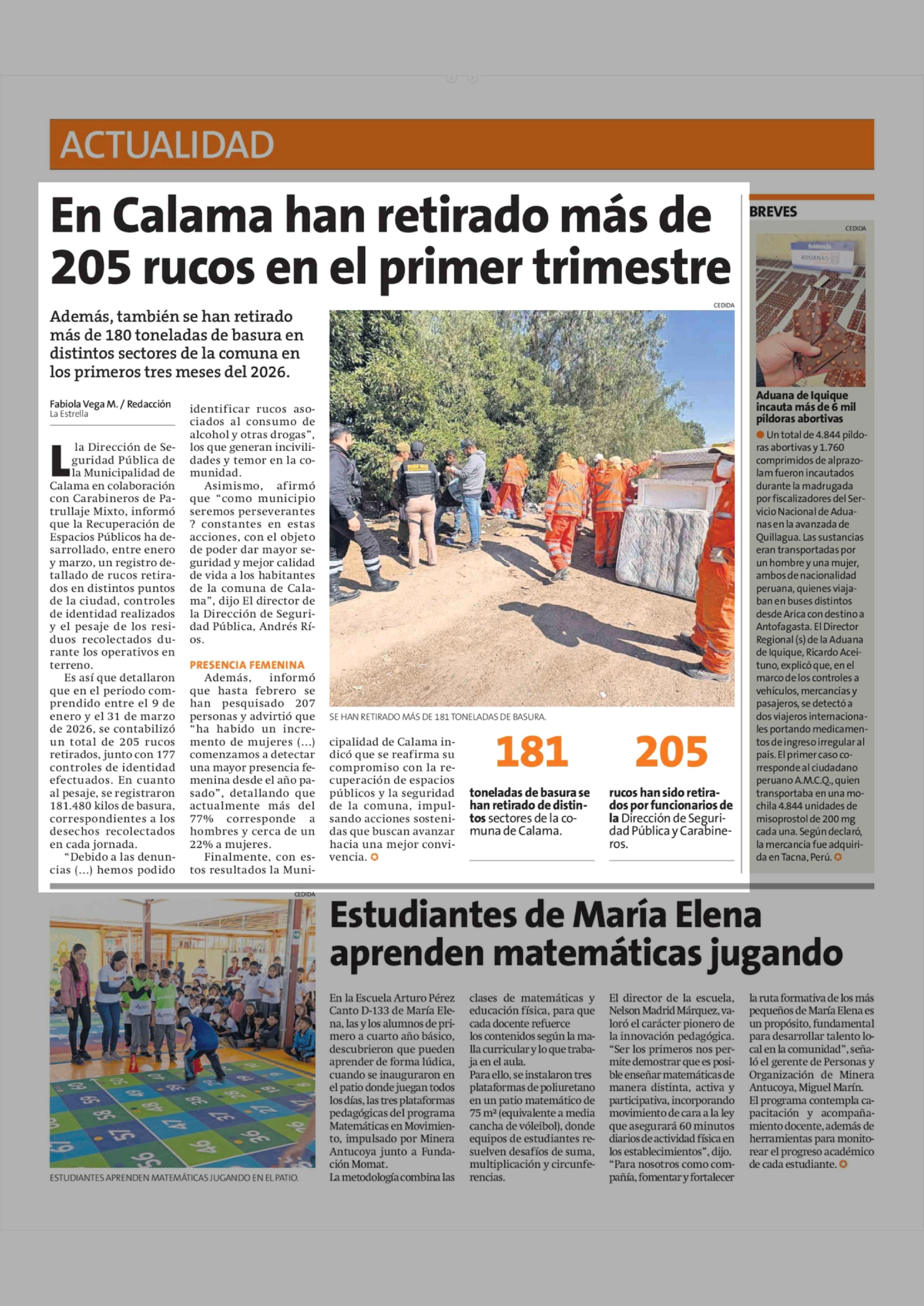 En Calama han retirado más de 205 rucos en el primer trimestre 04-04-2026 La Estrella de Antofagasta |