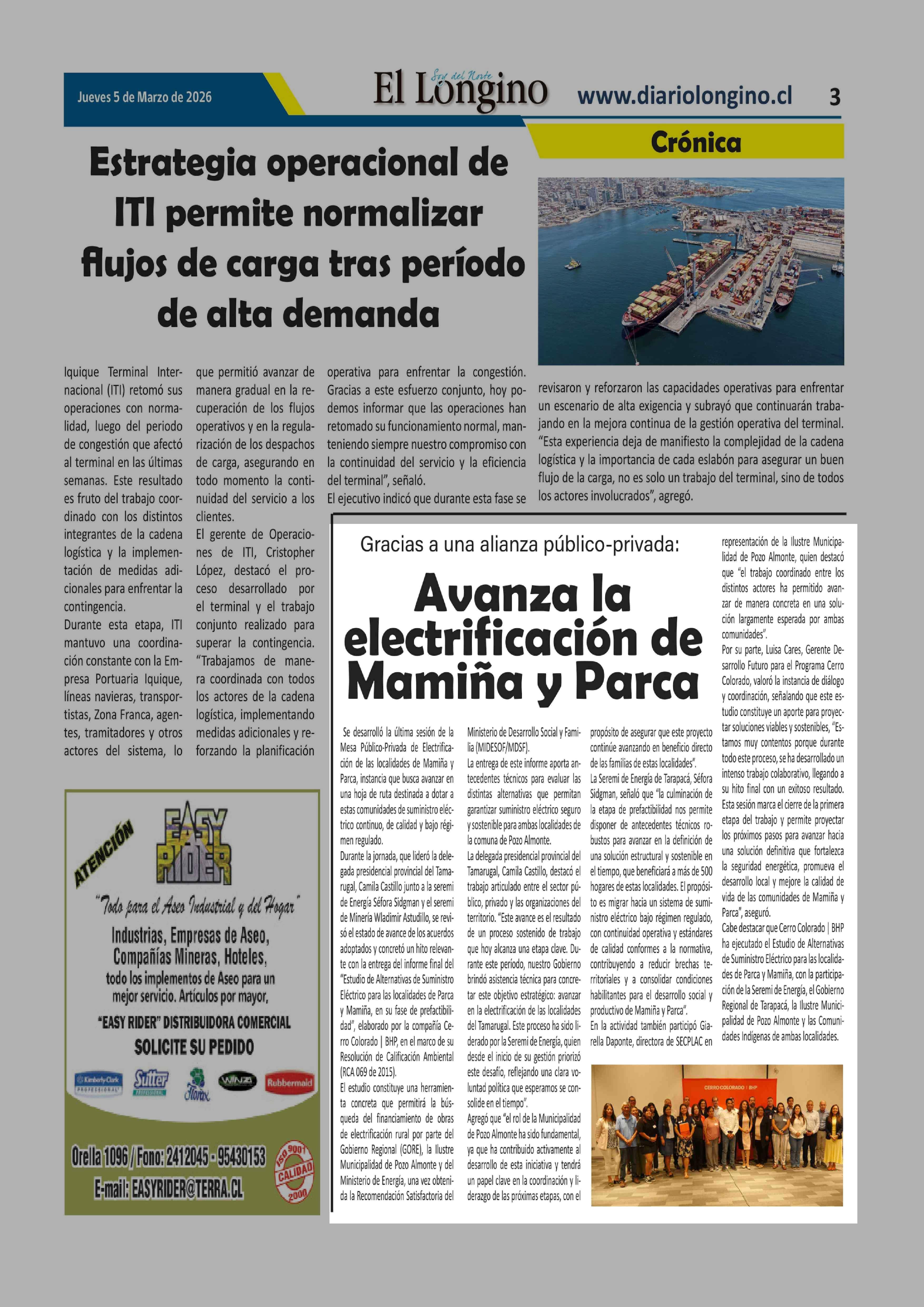| Fecha: | 05-03-2026 | Sector: | Noticia general | Región: | Región de Tarapacá |