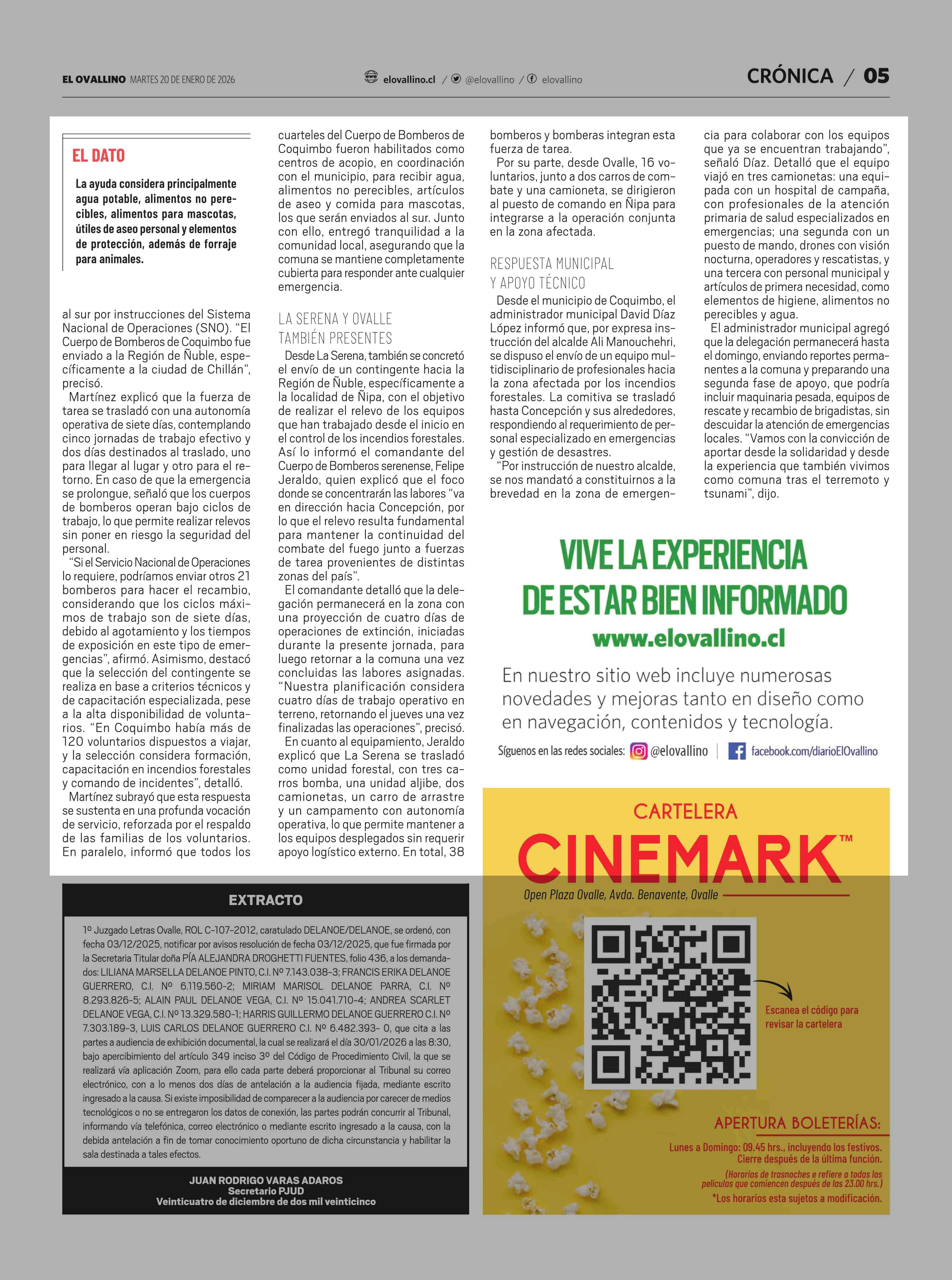 Fecha: 20-01-2026 Sector: Noticia general Región: Región de Coquimbo