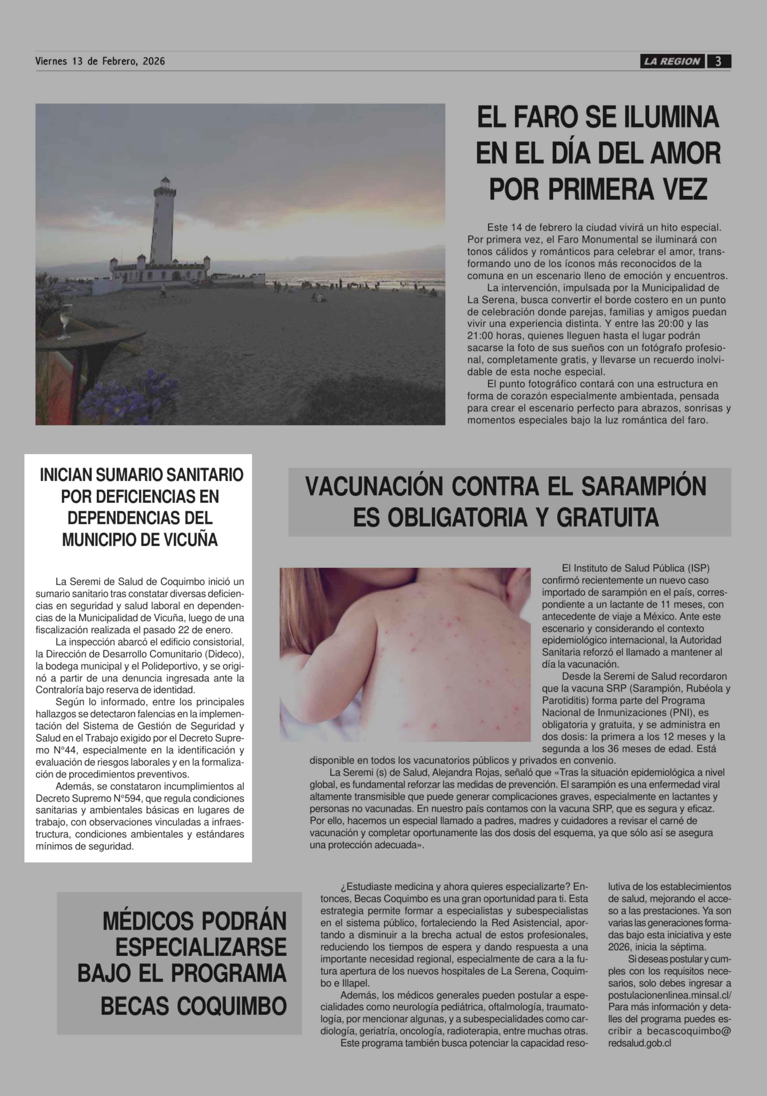 INICIAN SUMARIO SANITARIO POR DEFICIENCIAS EN DEPENDENCIAS DEL MUNICIPIO DE VICUÑA 13-02-2026 Diario la Región |