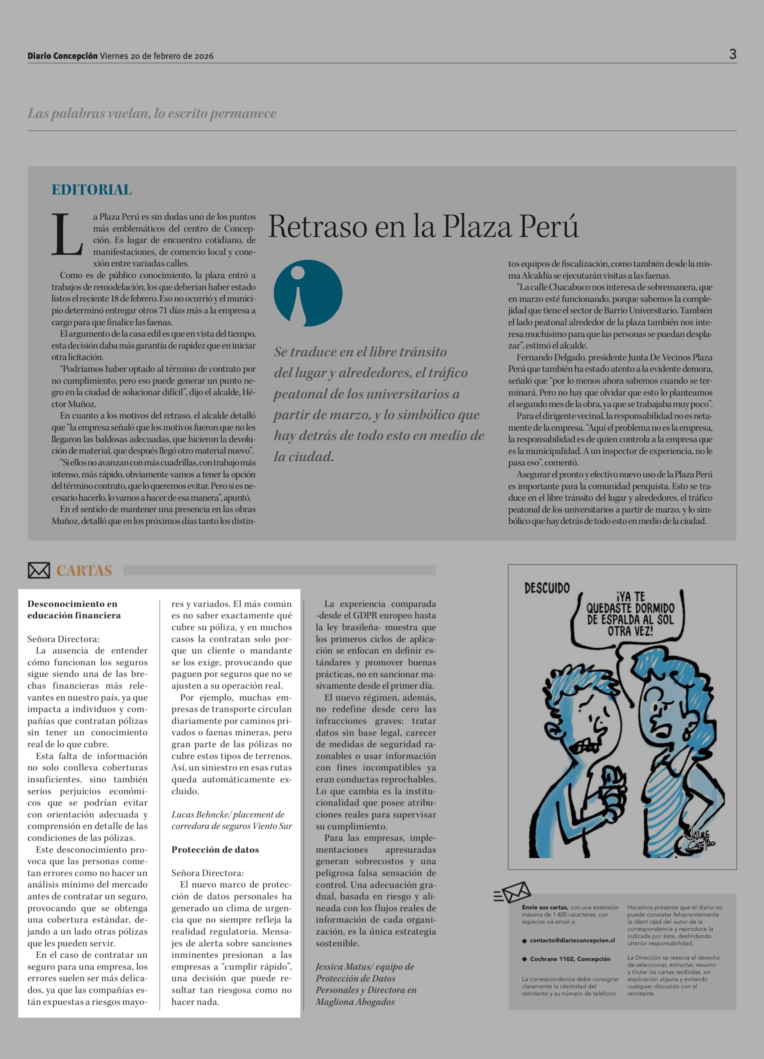 Cartas: Desconocimiento en educación financiera 20-02-2026 Diario Concepción |