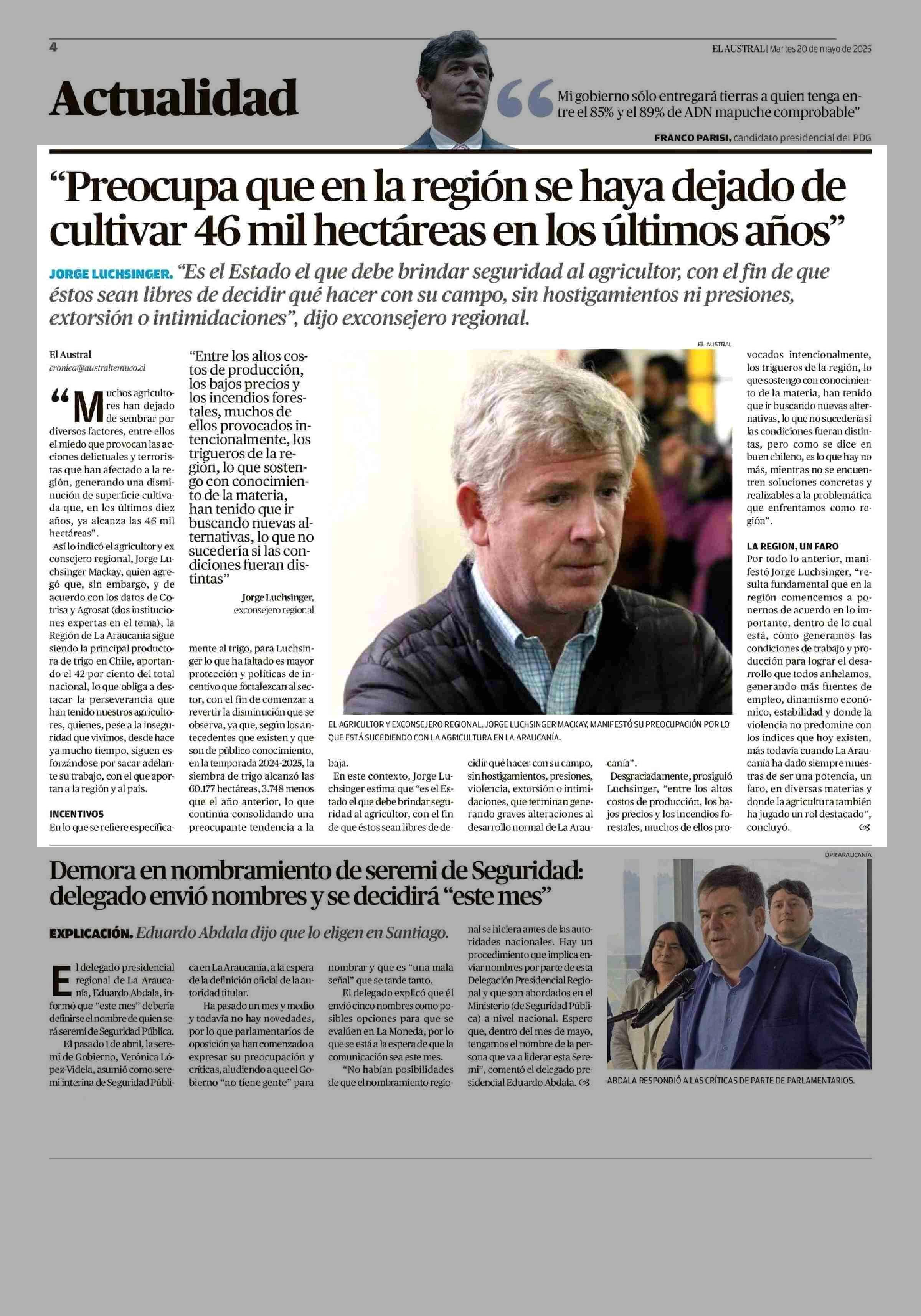 Fuente: El Austral de la Araucanía (El Austral de la Araucanía) Página(s): 4