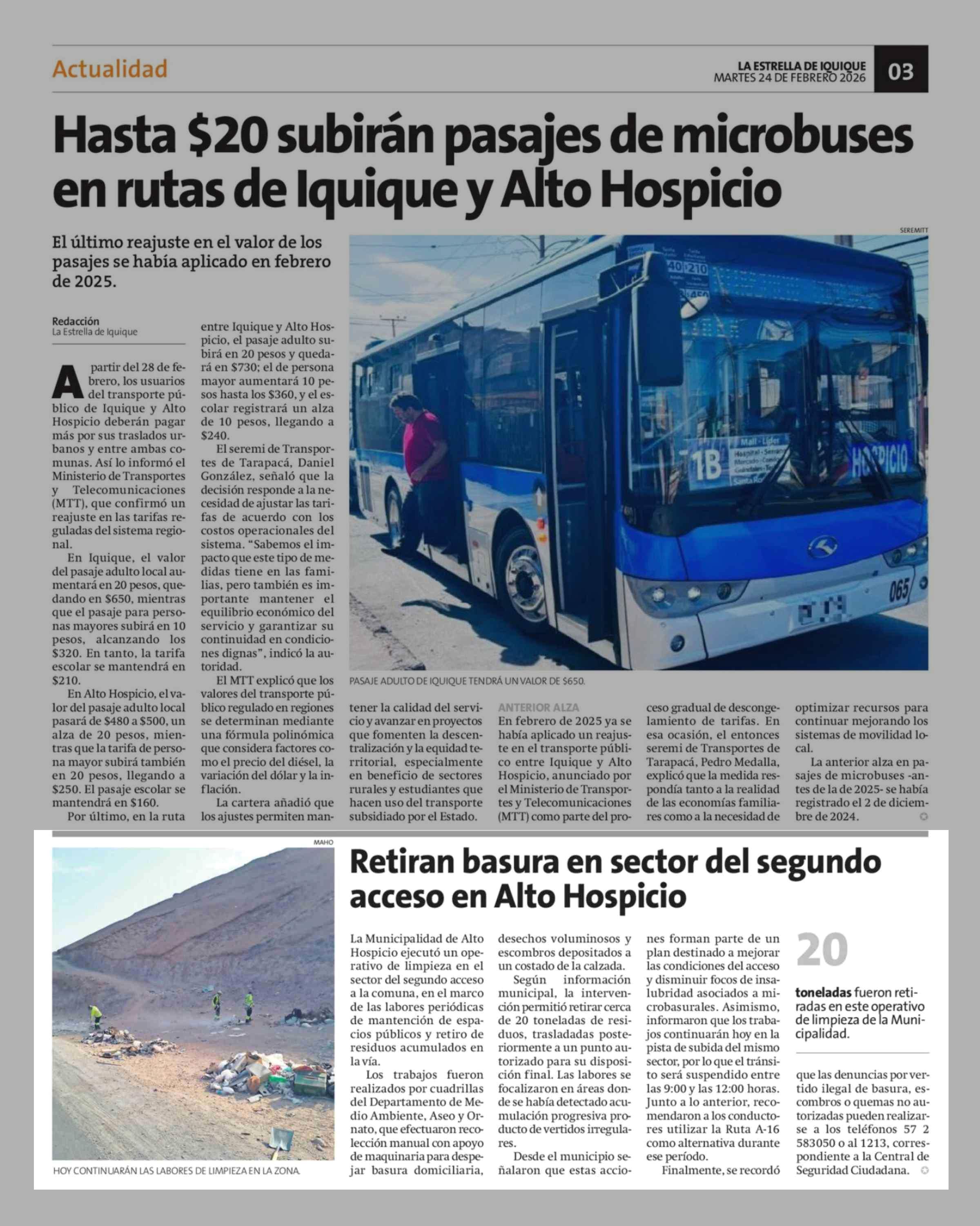 | Fecha: | 24-02-2026 | Sector: | Noticia general | Región: | Región de Tarapacá |