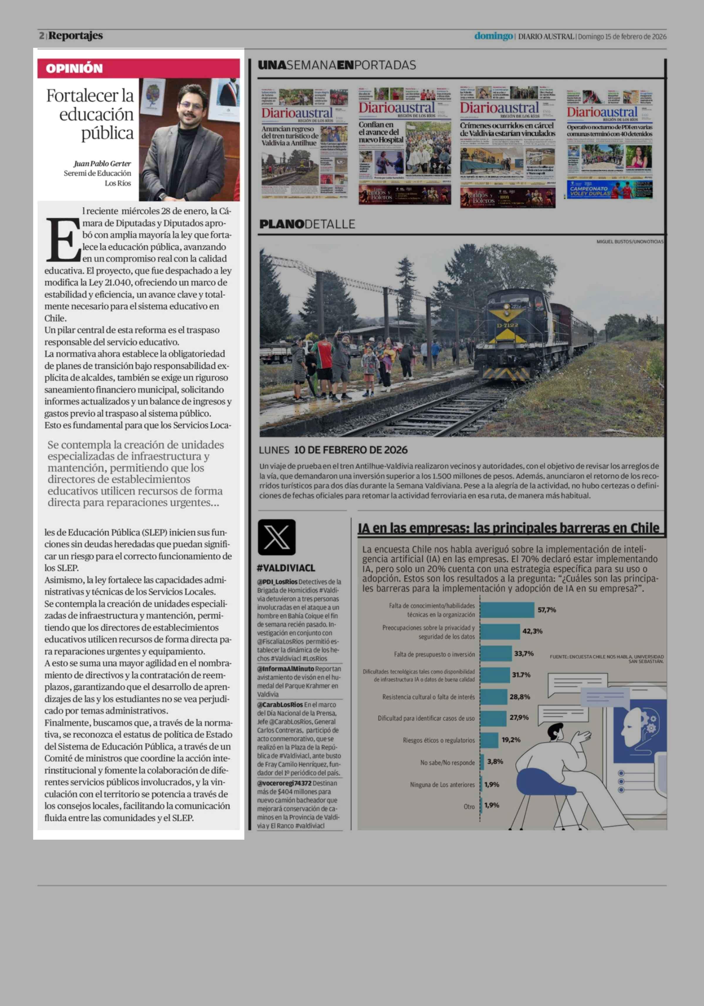 Columnas de Opinión: Fortalecer la educación pública 15-02-2026 Diario Austral Región de Los Ríos |