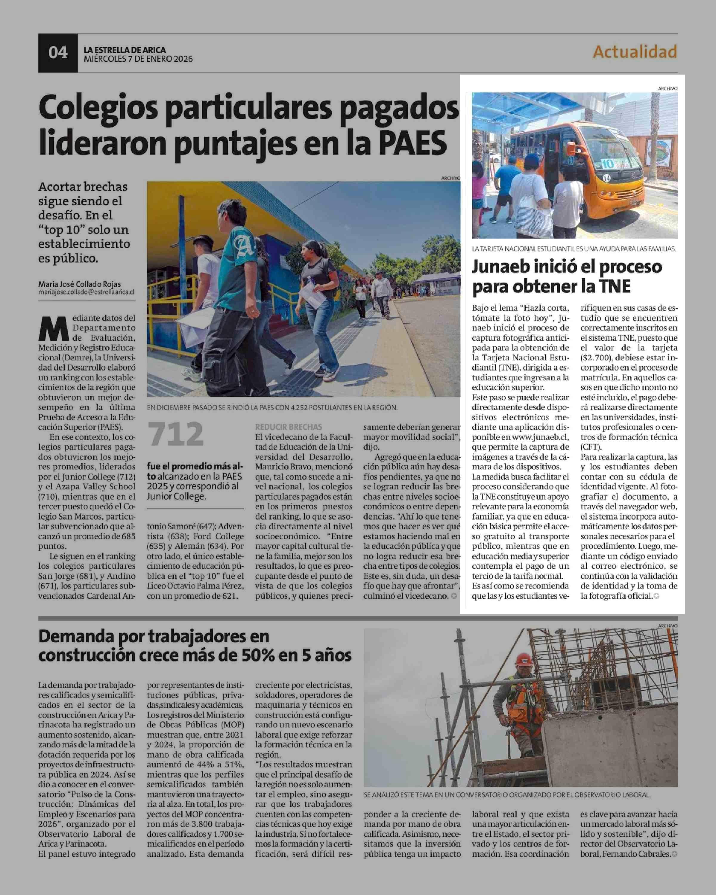 Junaeb inició el proceso para obtener la TNE 07-01-2026 La Estrella de Arica |