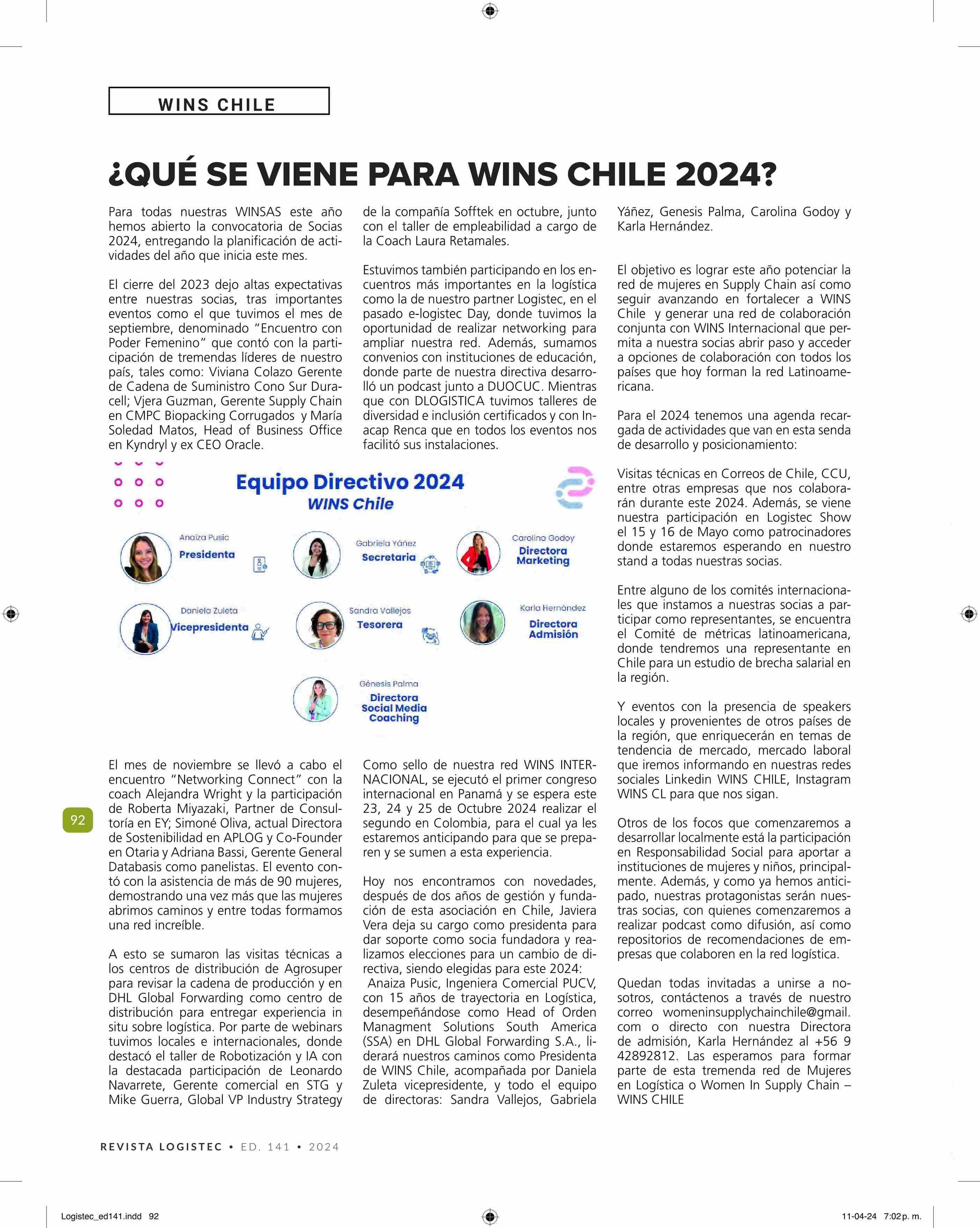 ¿QUÉ SE VIENE PARA WINS CHILE 2024? 15-04-2024 Revista Logistec |