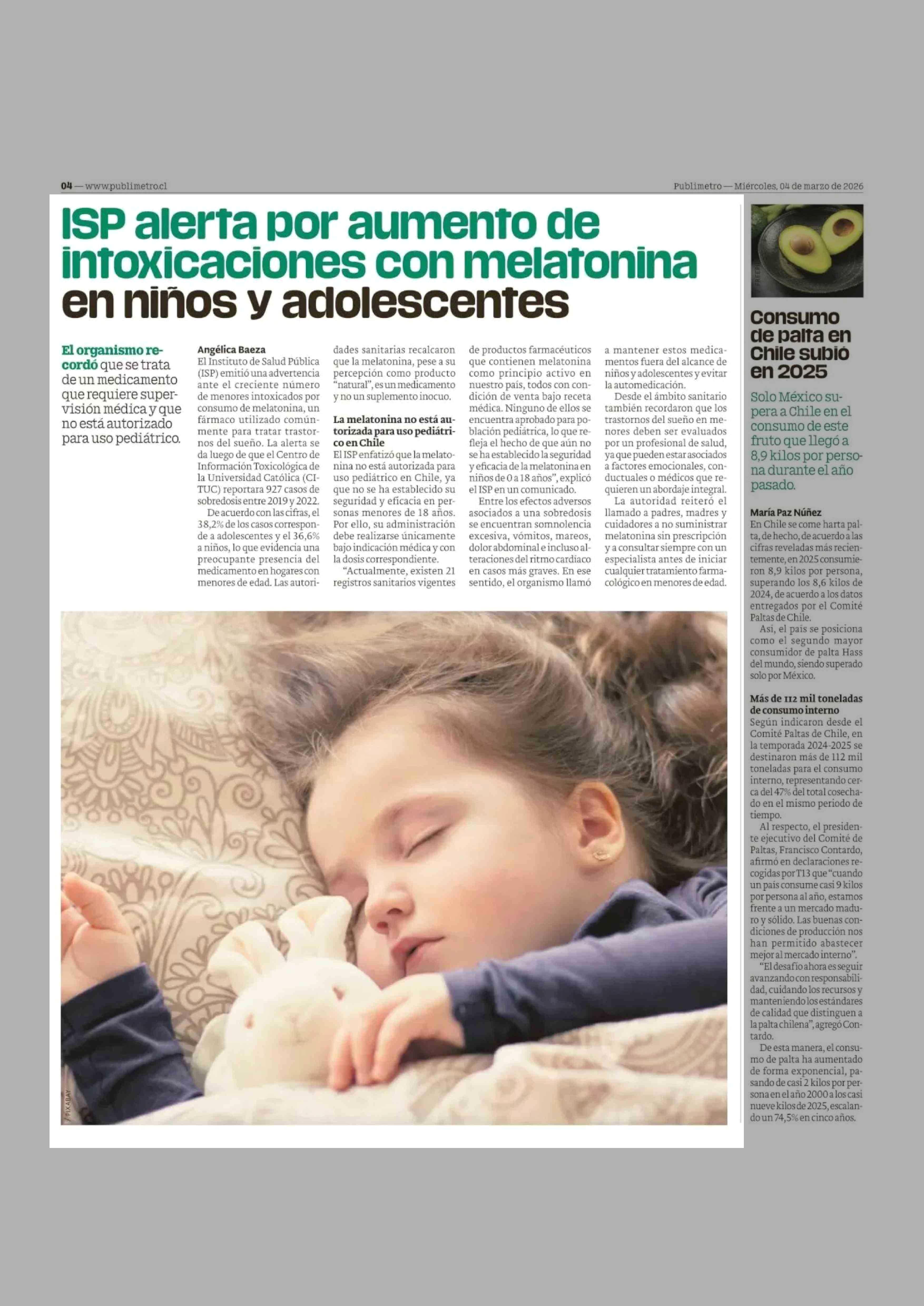 Título: ISP alerta por aumento de intoxicaciones con melatonina en niños y adolescentes