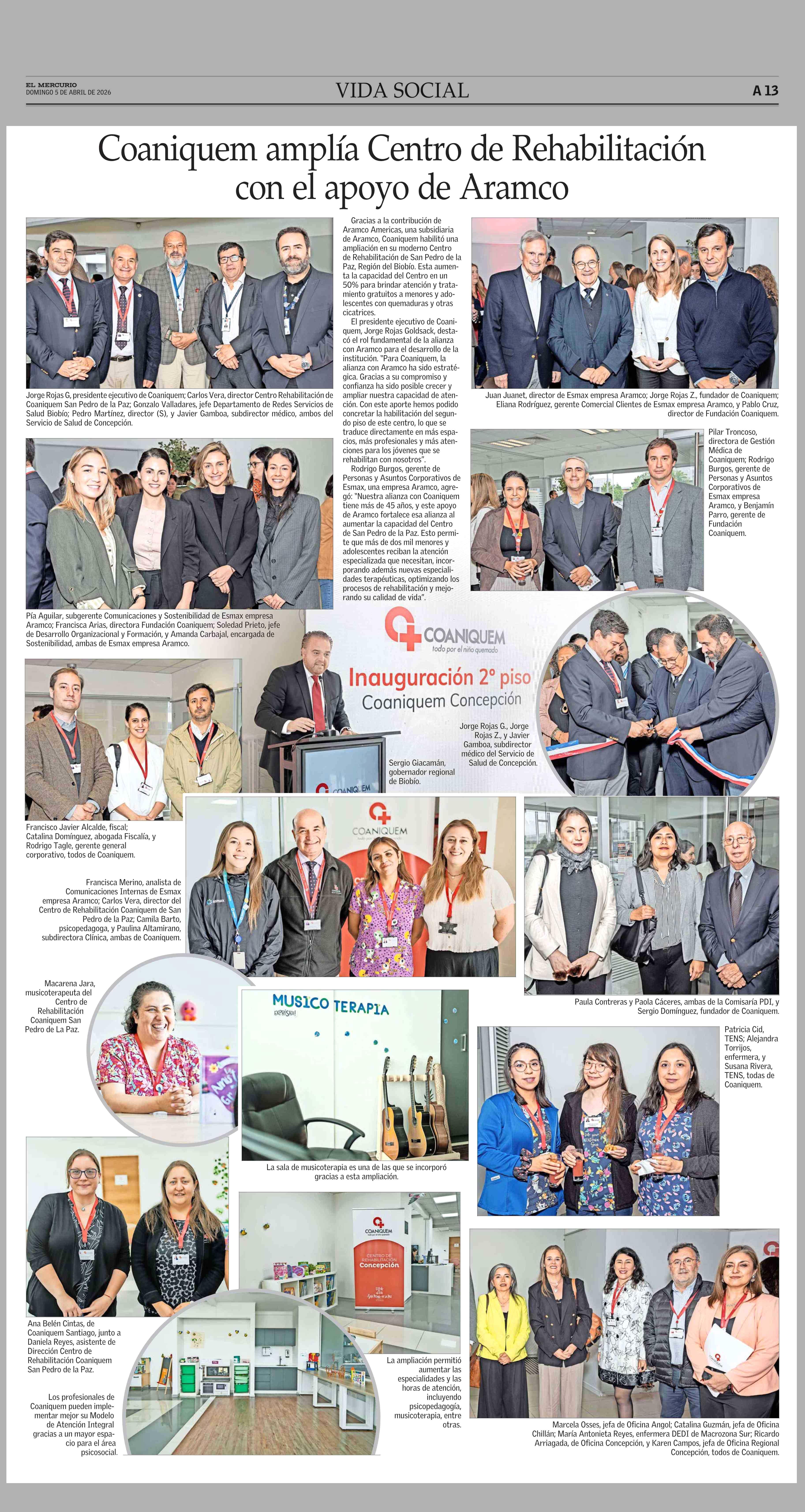 Coaniquem amplía Centro de Rehabilitación con el apoyo de Aramco 05-04-2026 El Mercurio |
