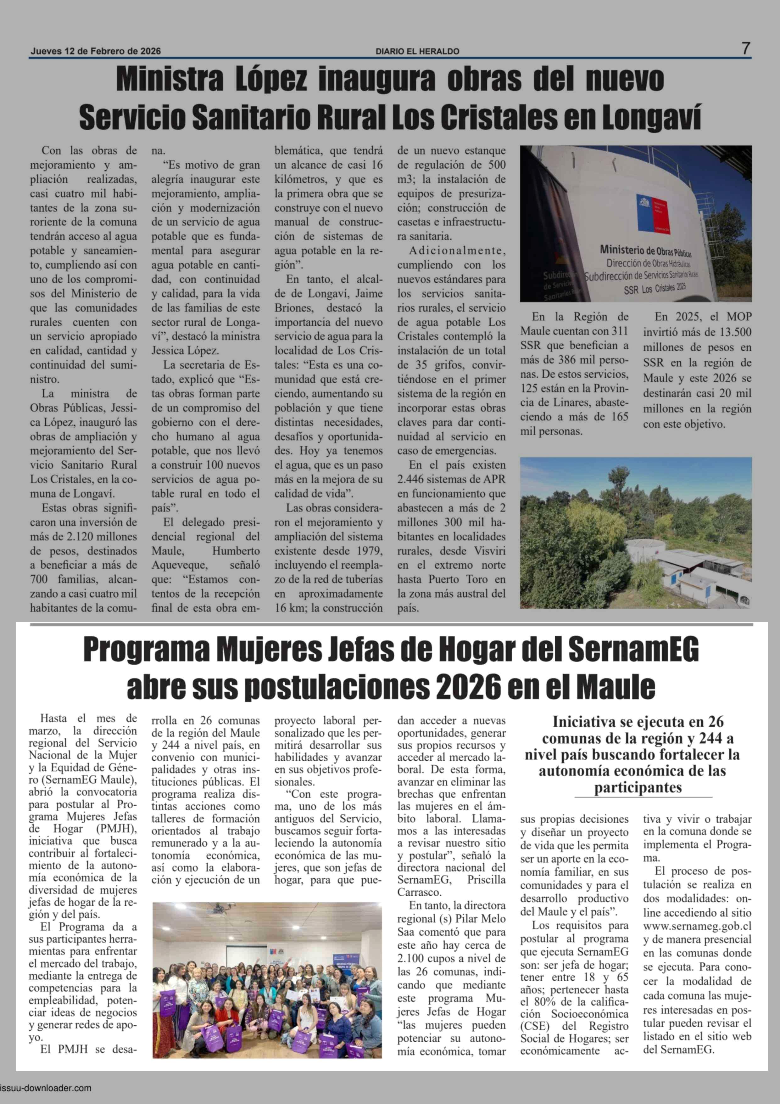 Programa Mujeres Jefas de Hogar del SernamEG abre sus postulaciones 2026 en el Maule 12-02-2026 El Heraldo |