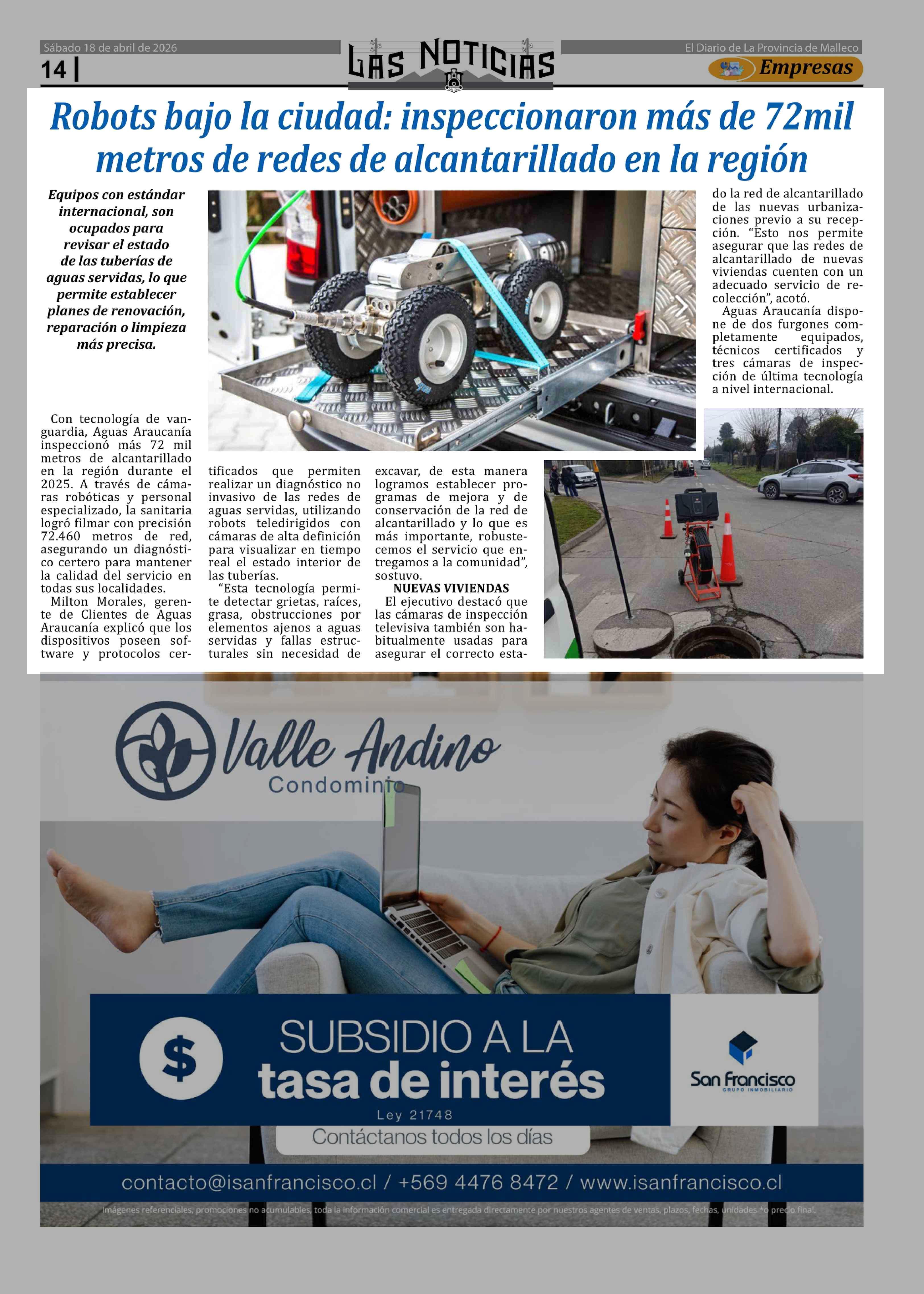 Robots bajo la ciudad: inspeccionaron más de 72 mil metros de redes de alcantarillado en la región 18-04-2026 Las Noticias |