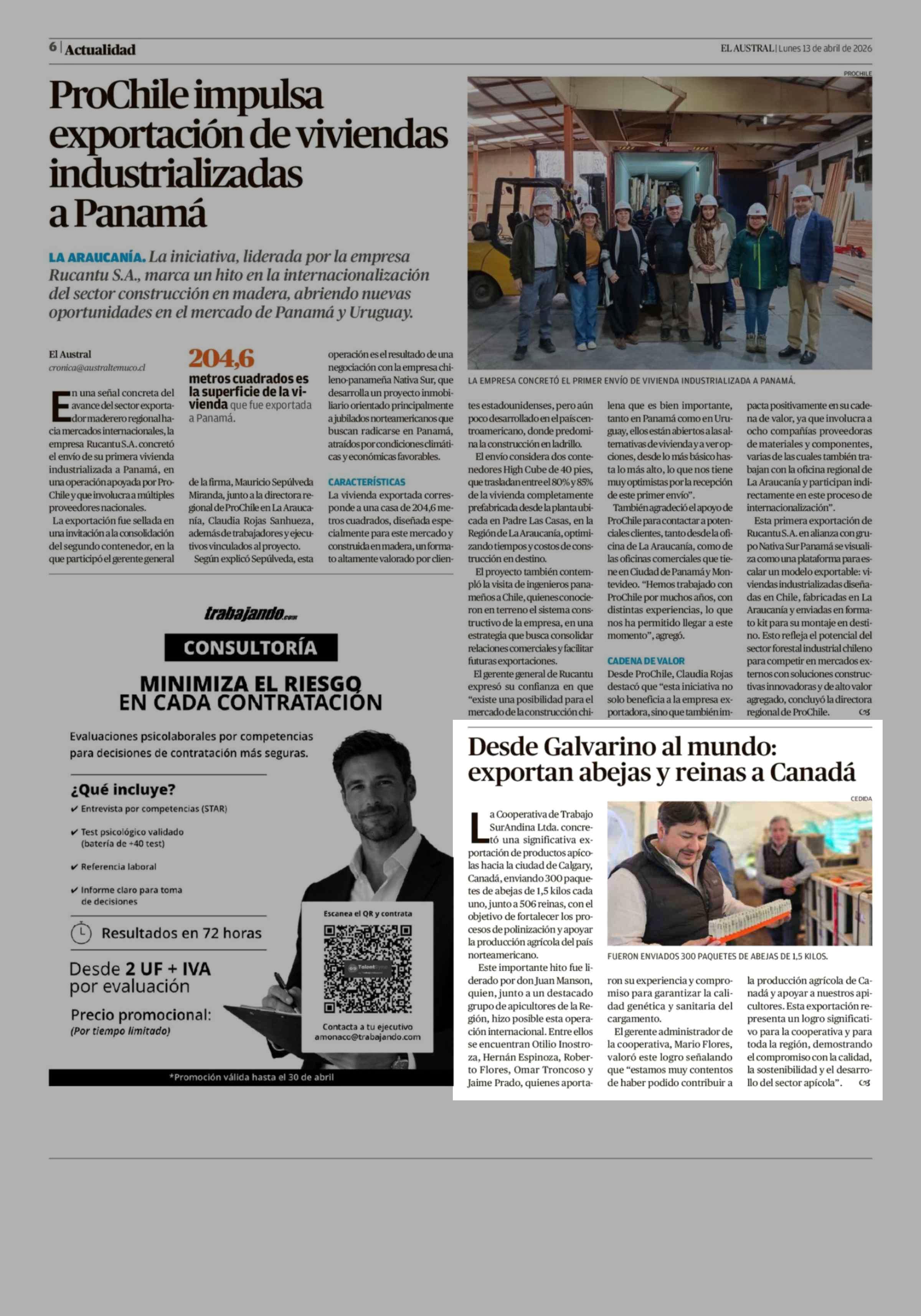Desde Galvarino al mundo: exportan abejas y reinas a Canadá 13-04-2026 El Austral de la Araucanía |