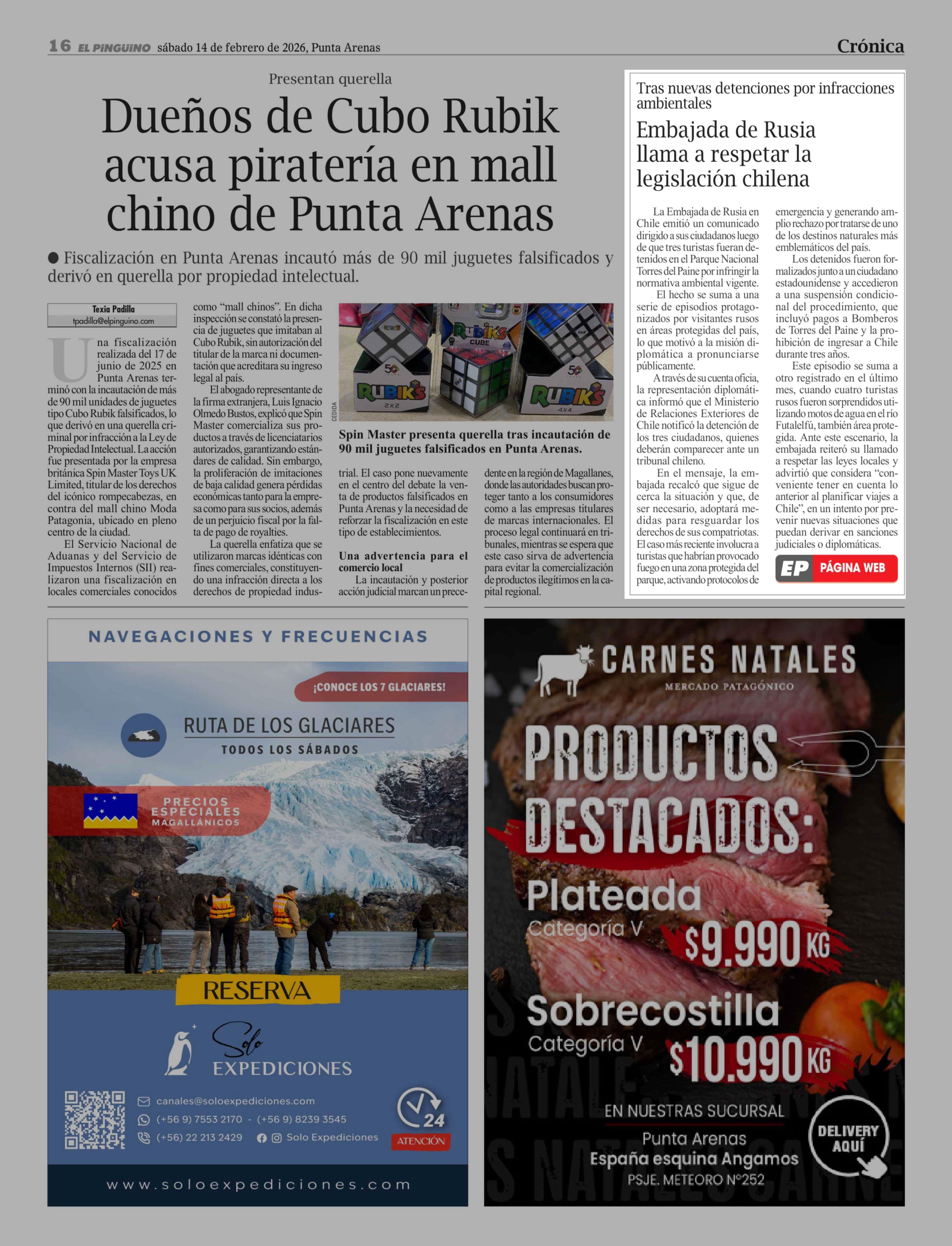 Embajada de Rusia llama a respetar la legislación chilena 14-02-2026 El Pingüino |