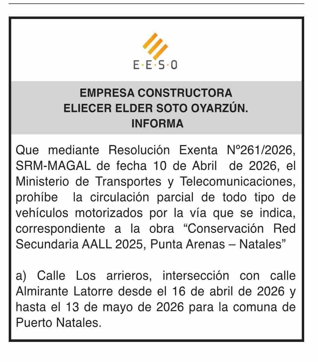 | Fecha: | 17-04-2026 | Sector: | Extractos | Región: | Región de Magallanes y de la Antártica Chilena |