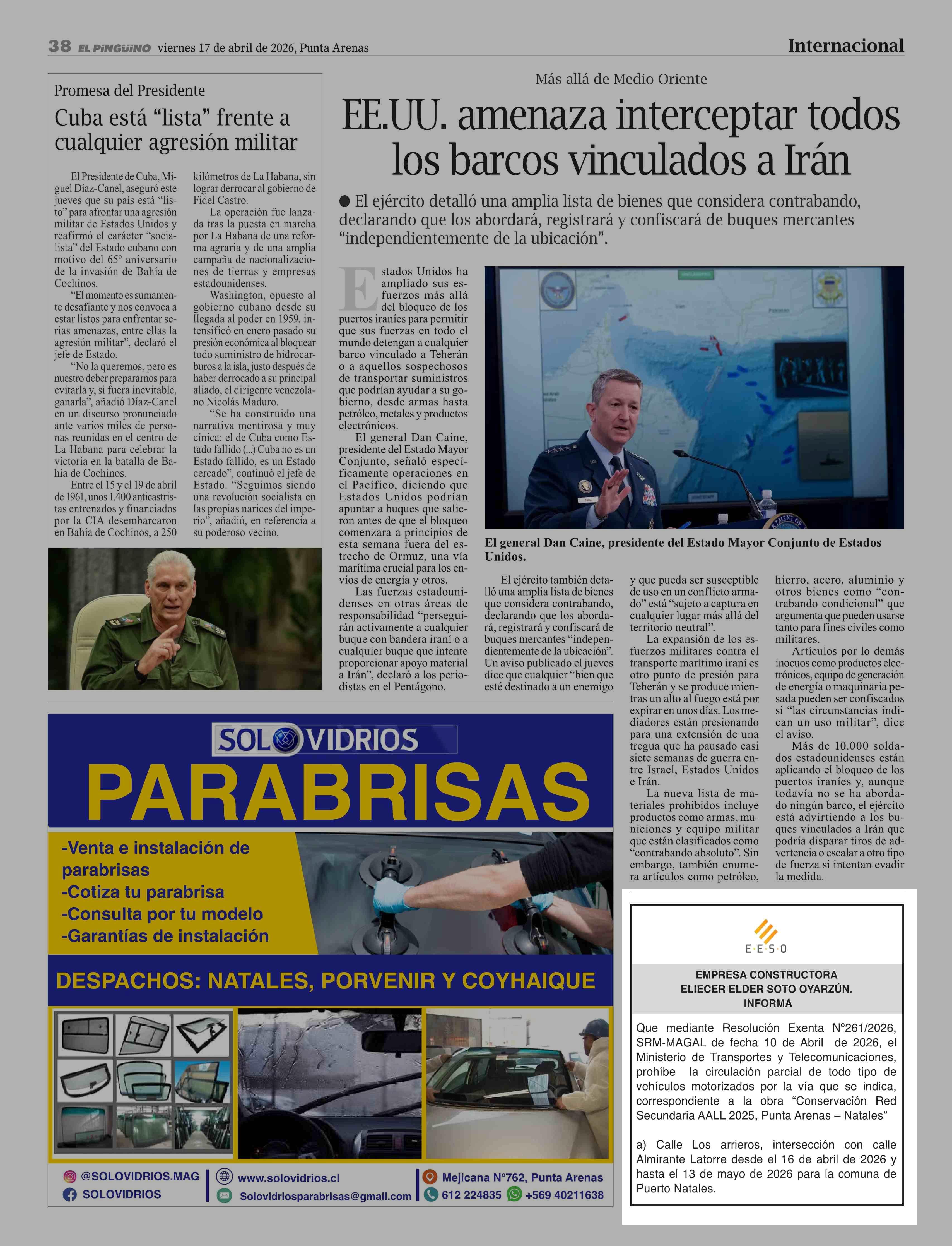 EXTRACTOS: EMPRESA CONSTRUCTORA ELIECER ELDER SOTO OYARZÚN. INFORMA 17-04-2026 El Pingüino |