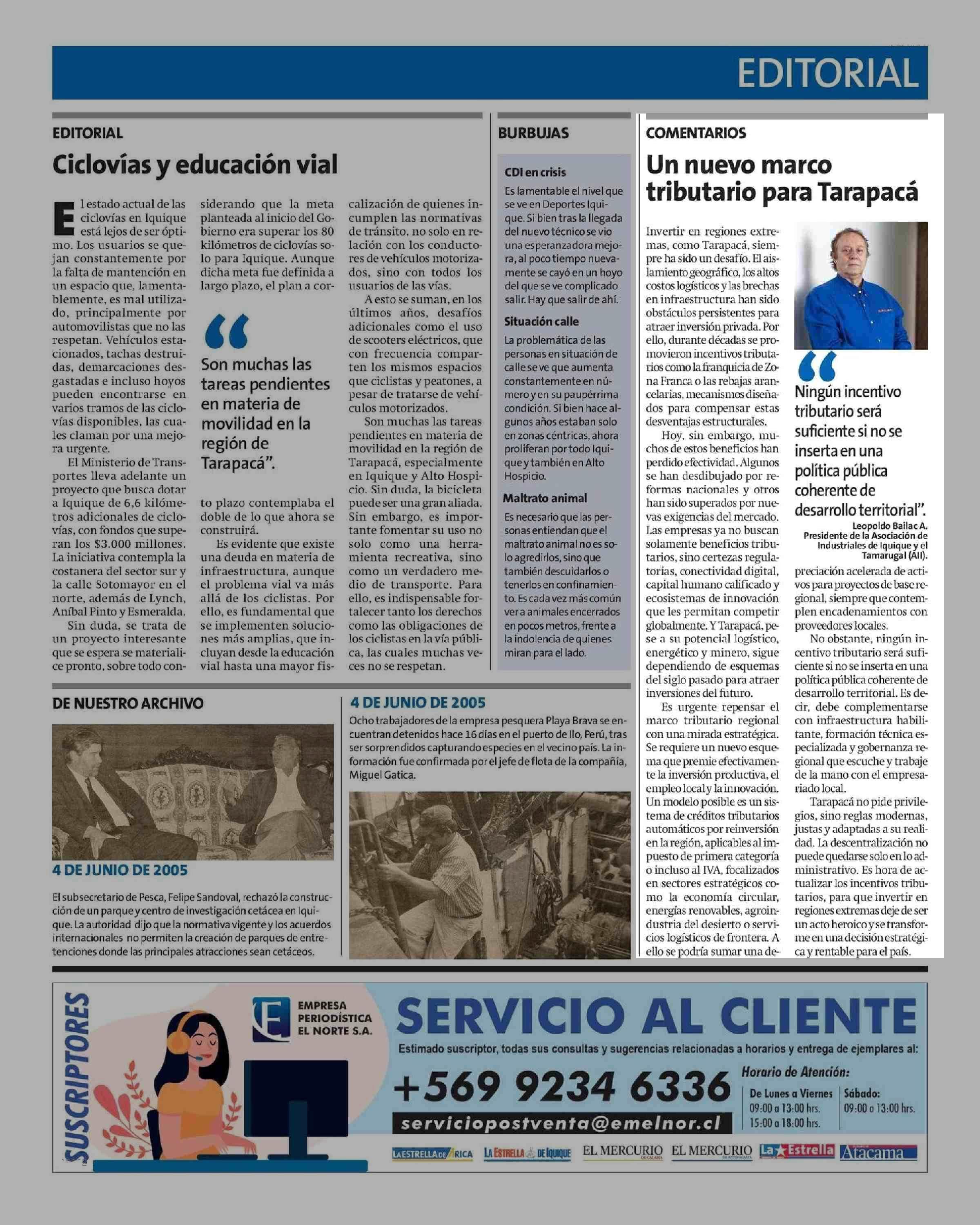 Un nuevo marco tributario para Tarapacá 04-06-2025 La Estrella de Iquique |