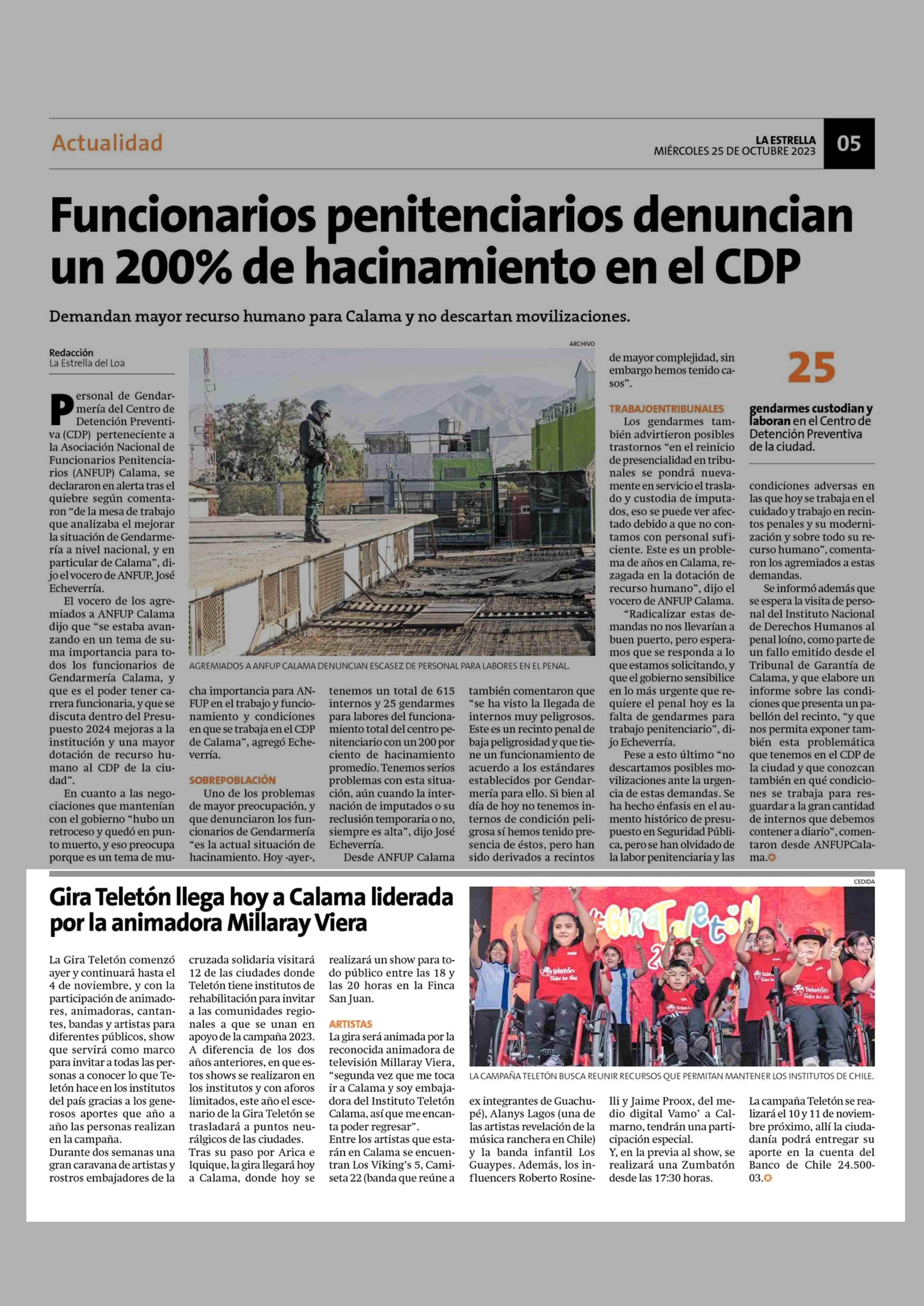 | Fecha: | 25-10-2023 | Sector: | Noticia general | Región: | Región de Antofagasta |