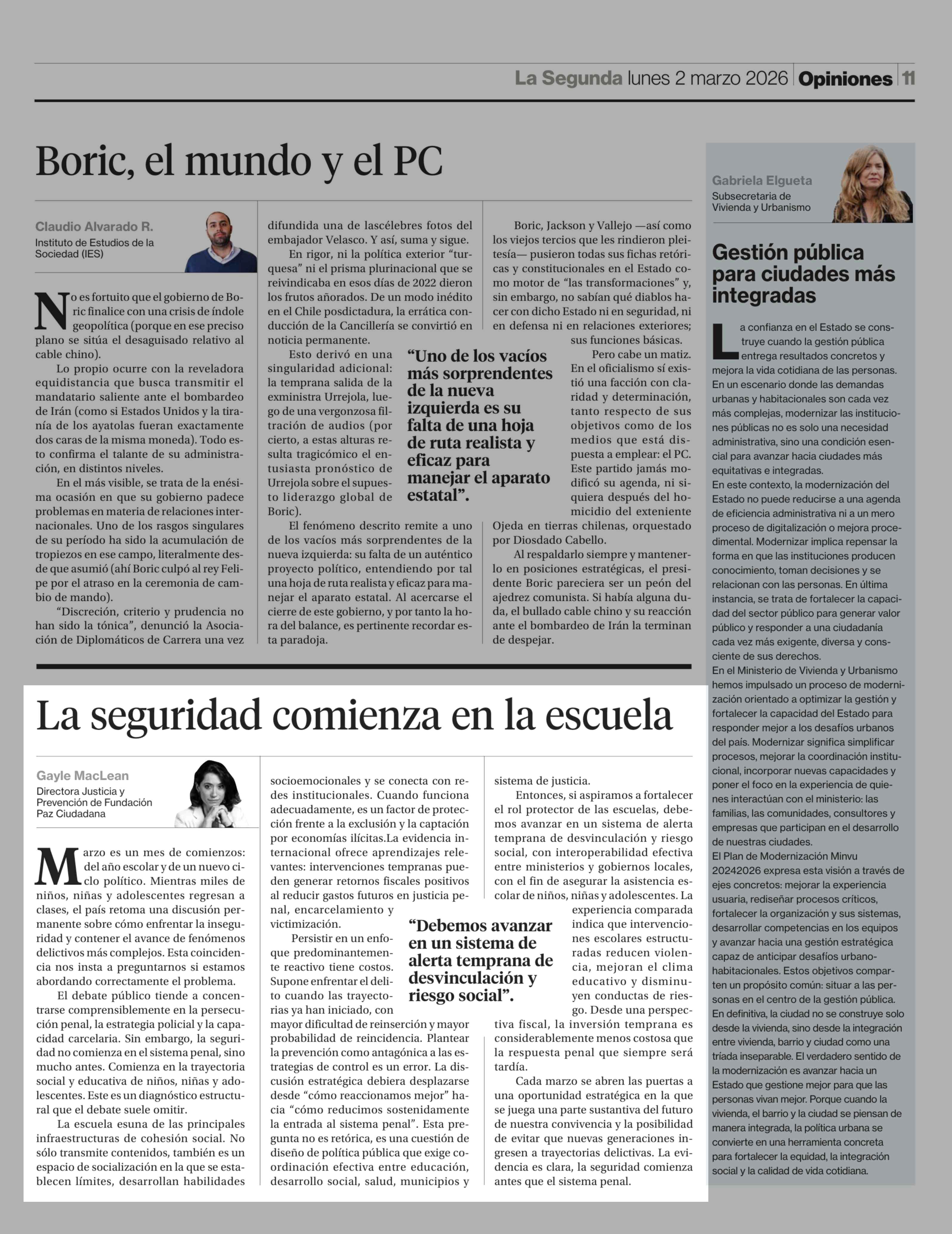 Columnas de Opinión: La seguridad comienza en la escuela 02-03-2026 La Segunda |
