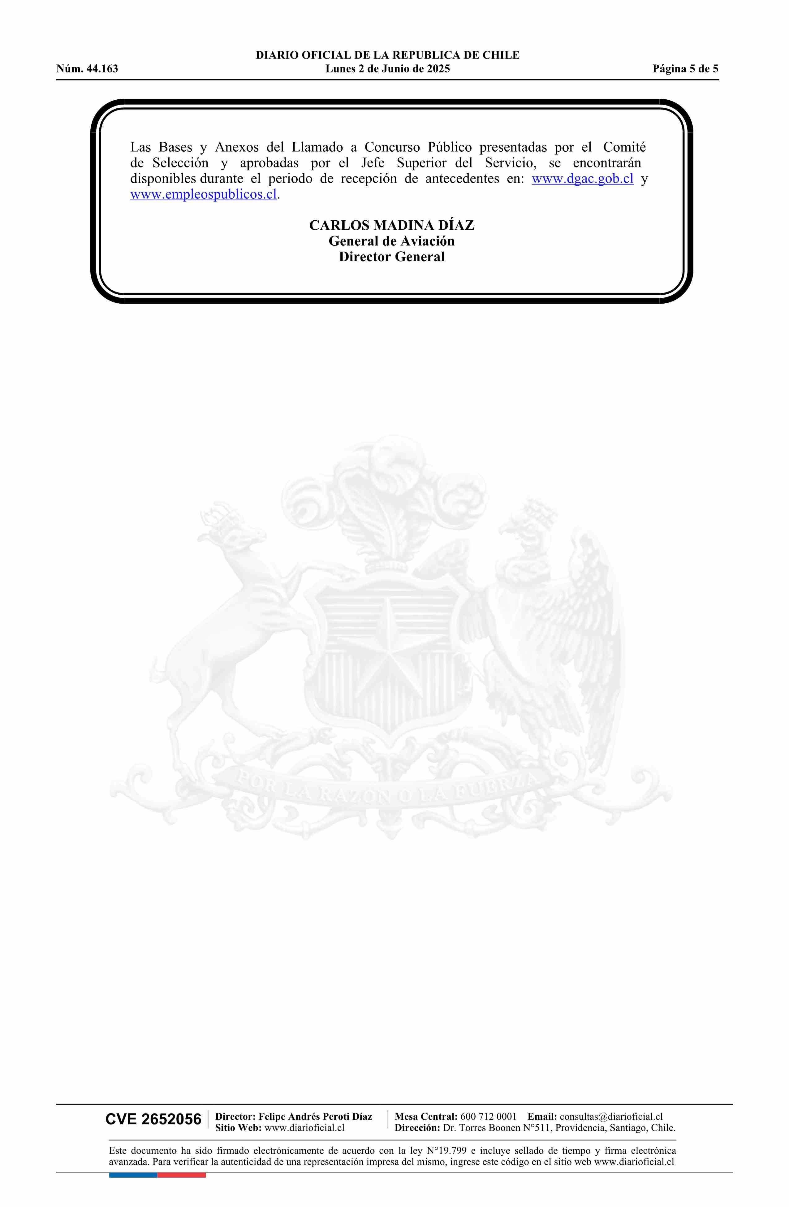 AVISO LICITACIONES: Llama a concurso público para proveer los cargos de Tercer Nivel Jerárquico de la planta de Directivos 02-06-2025 Diario Oficial Edición Electrónica |