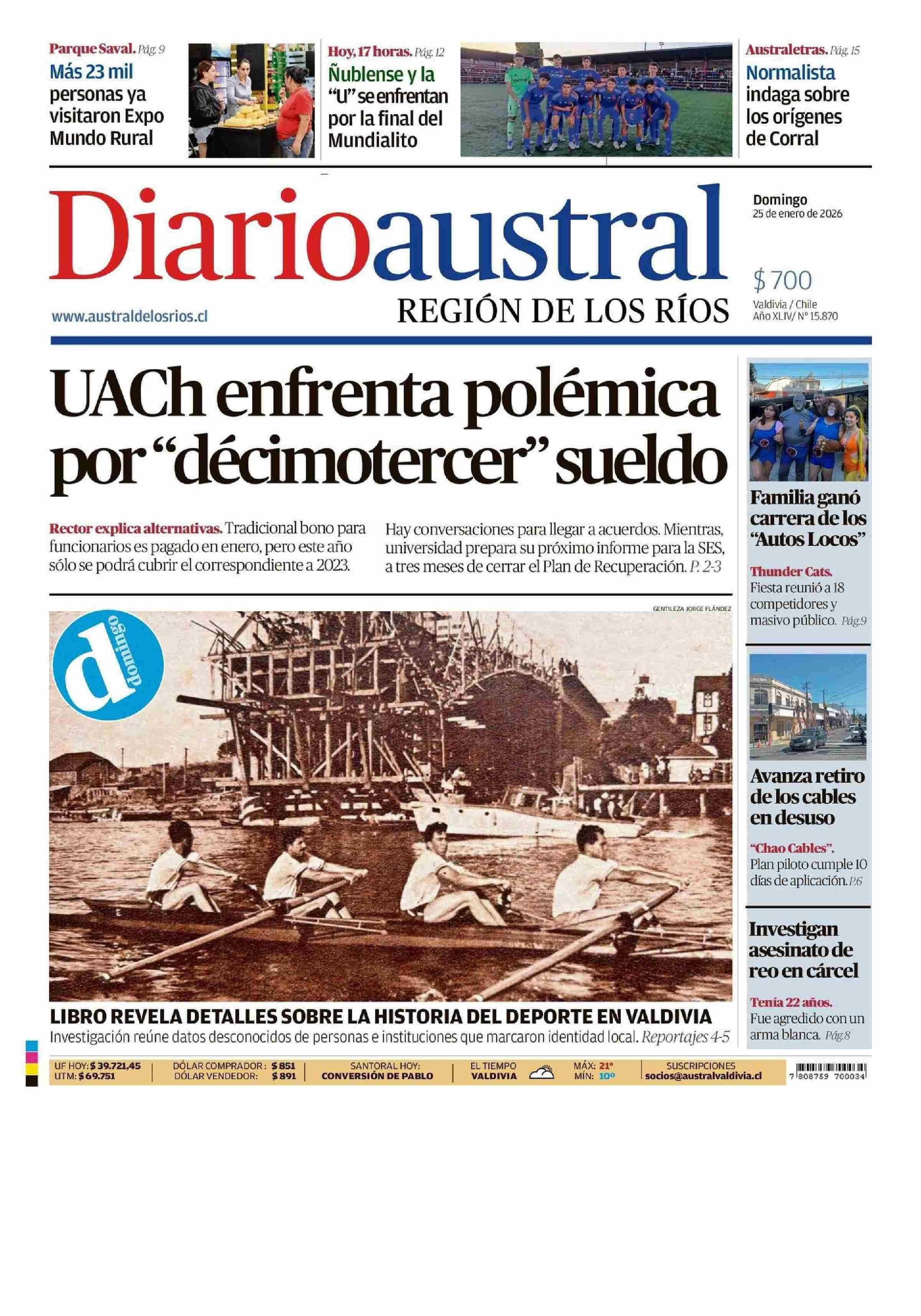 | Fecha: | 25-01-2026 | Sector: | Portada | Región: | Región de Los Ríos |