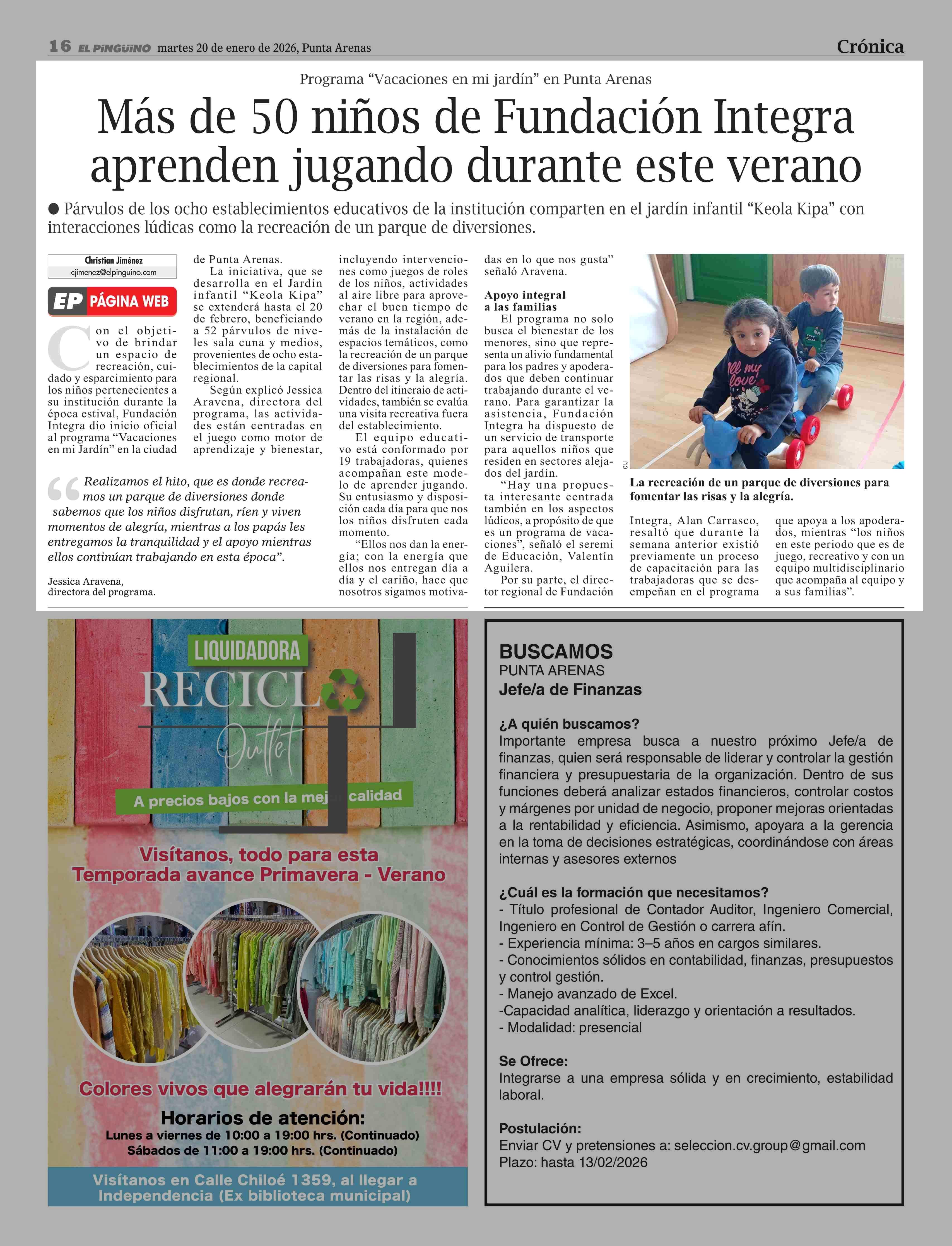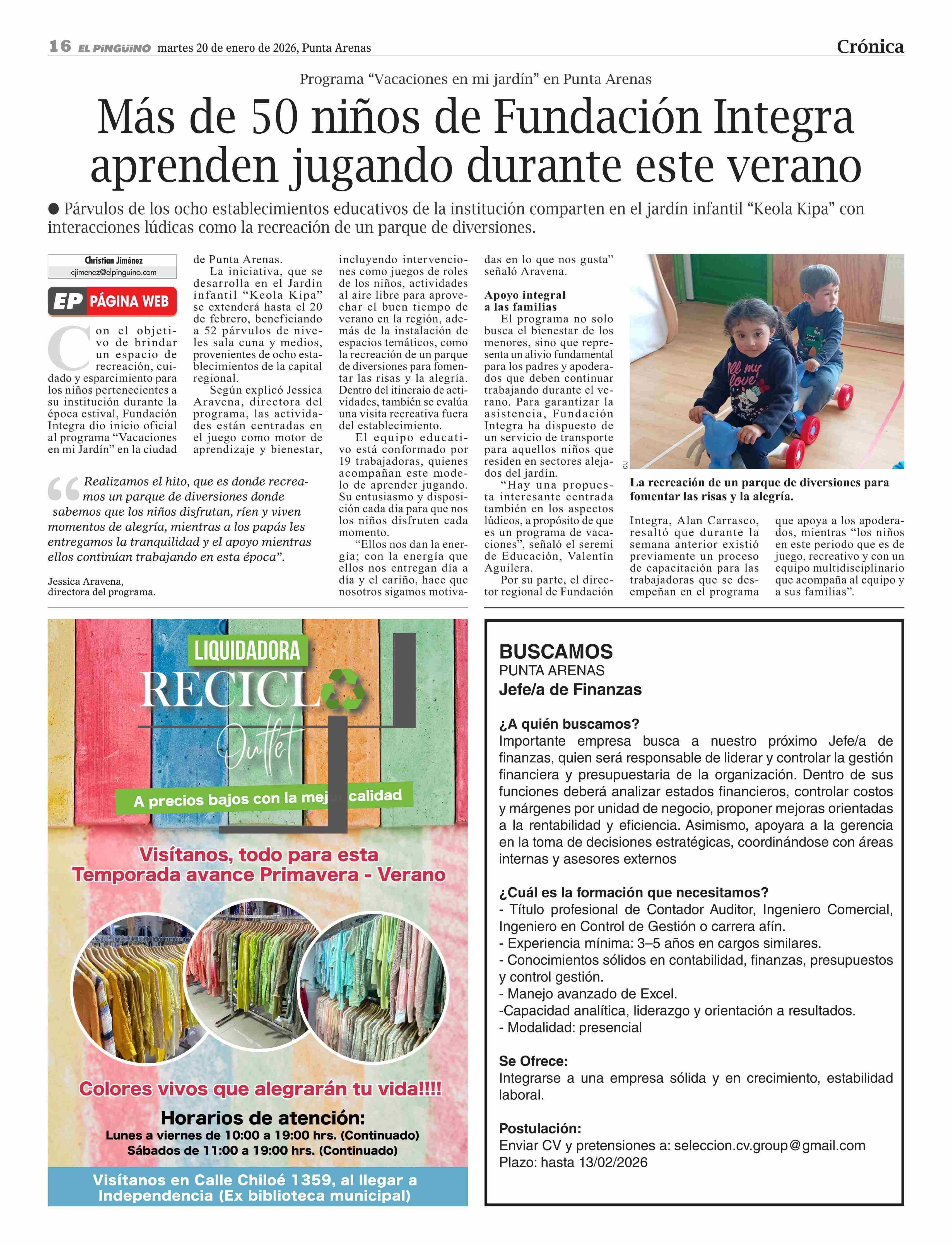 Fecha: 20-01-2026 Sector: Noticia general Región: Región de Magallanes y de la Antártica Chilena