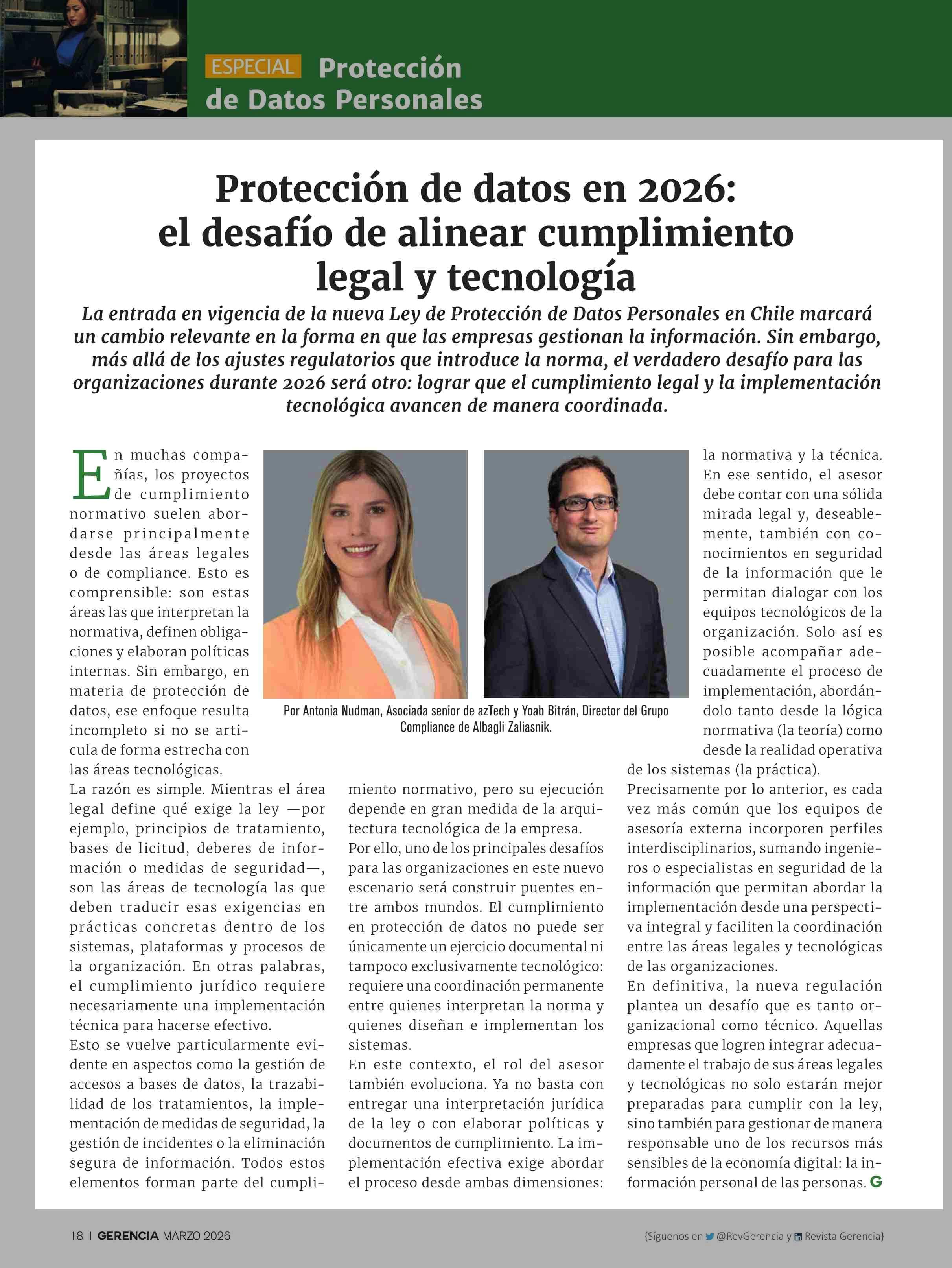 Protección de datos en el desafío de alinear cumplimiento legal y tecnología 30-03-2026 Revista Gerencia |