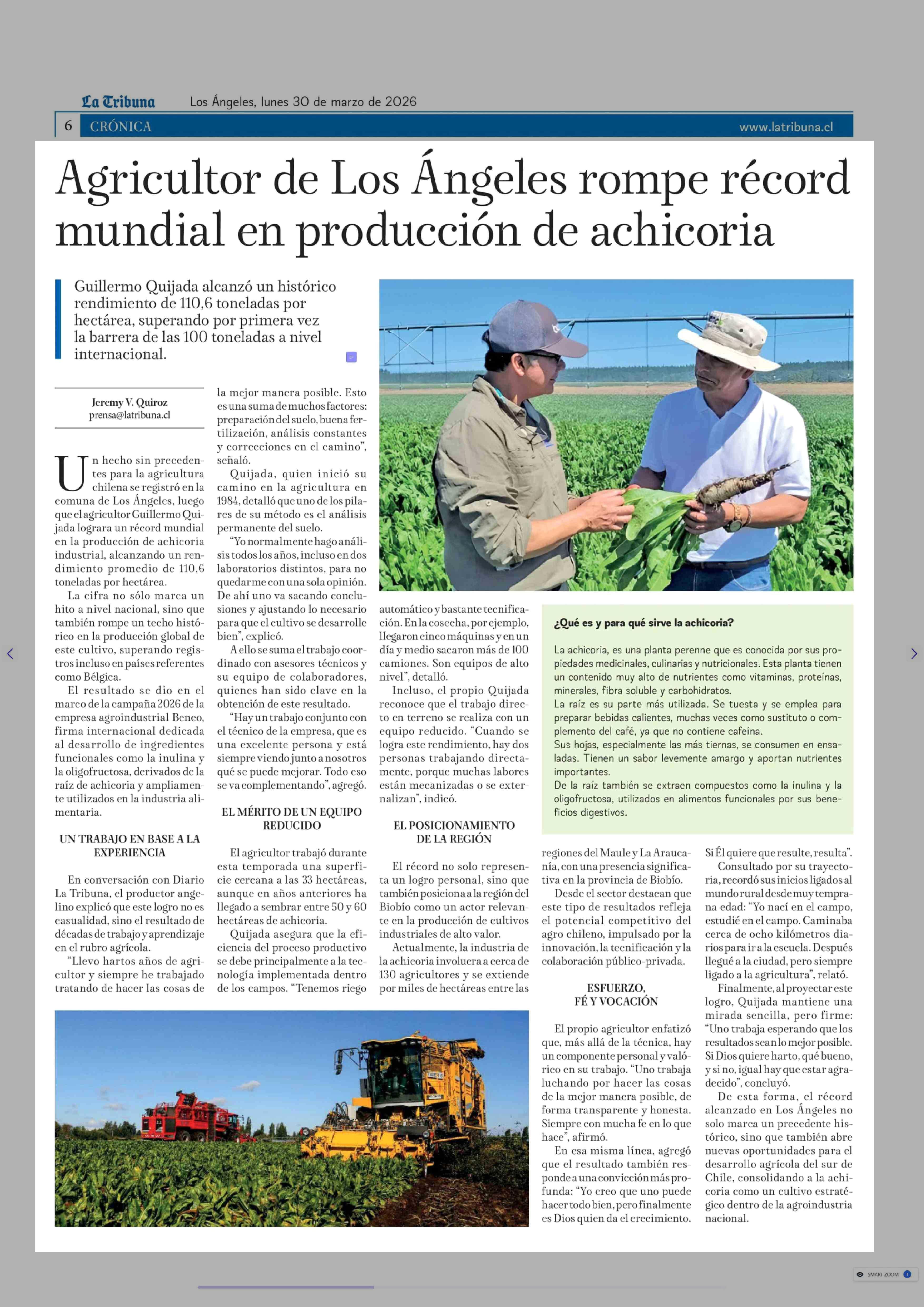 Título: Agricultor de Los Angeles rompe récord mundial en producción de achicoria