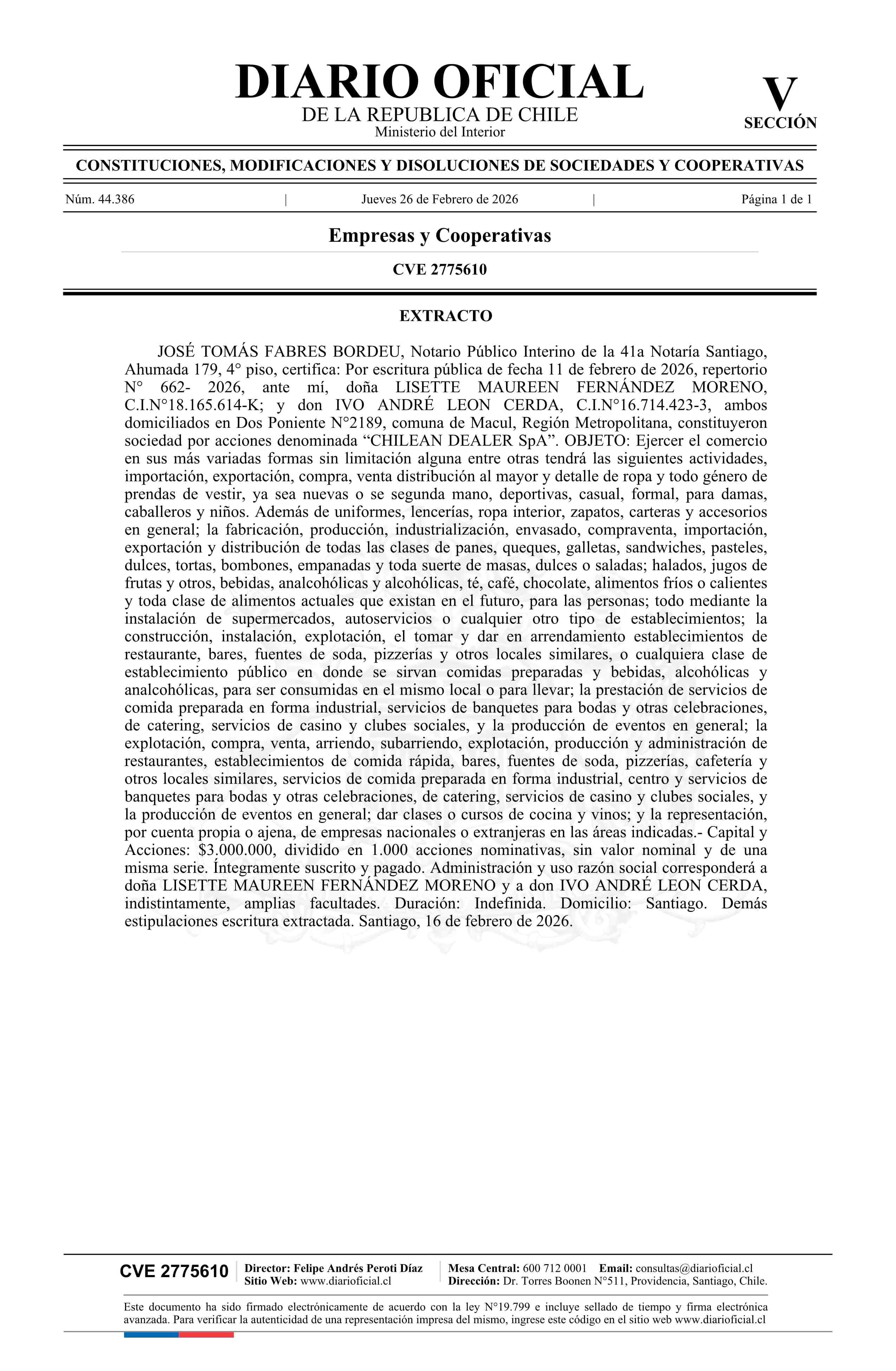 Título: CHILEAN DEALER SpA