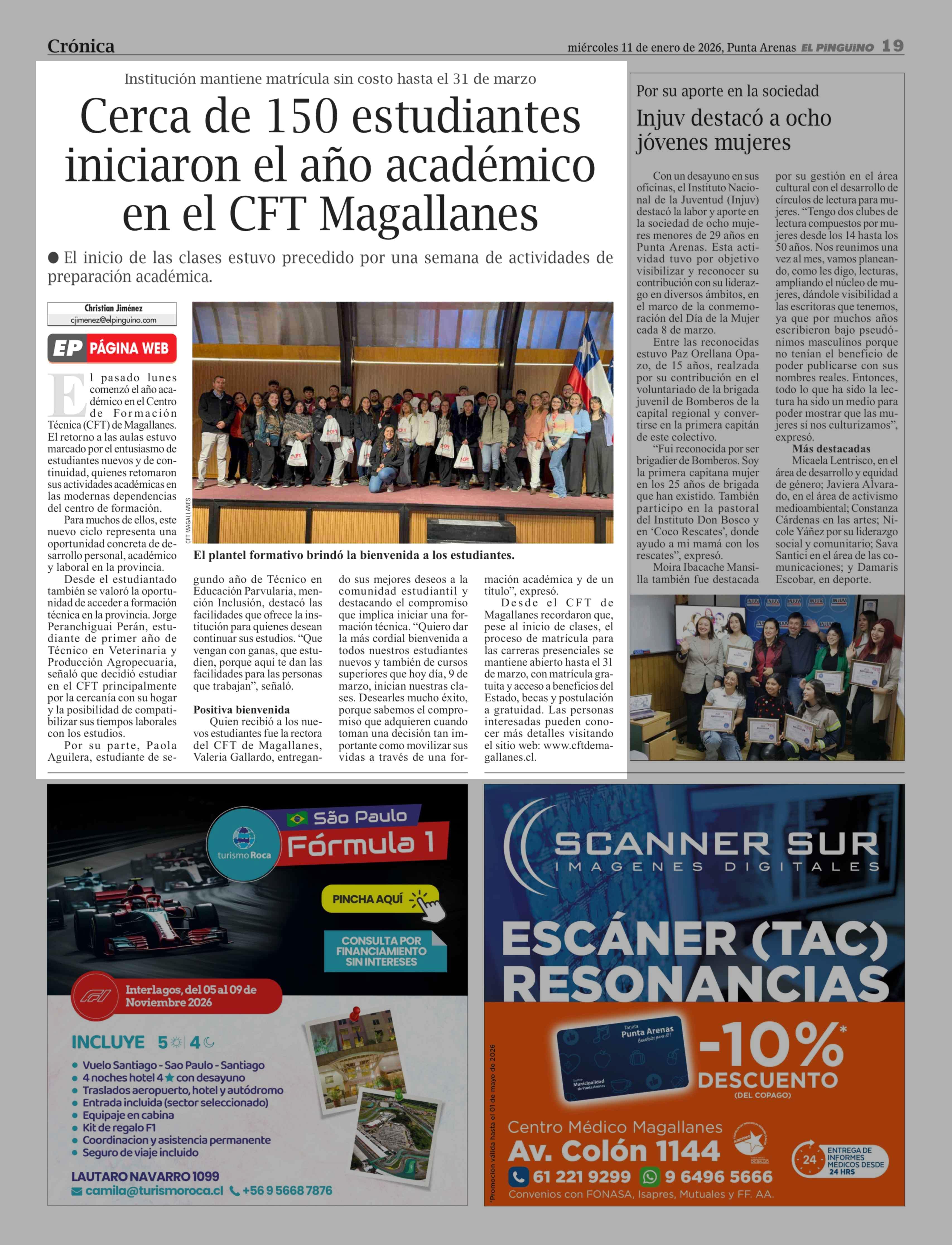Cerca de 150 estudiantes iniciaron el año académico en el CFT Magallanes 11-03-2026 El Pingüino |