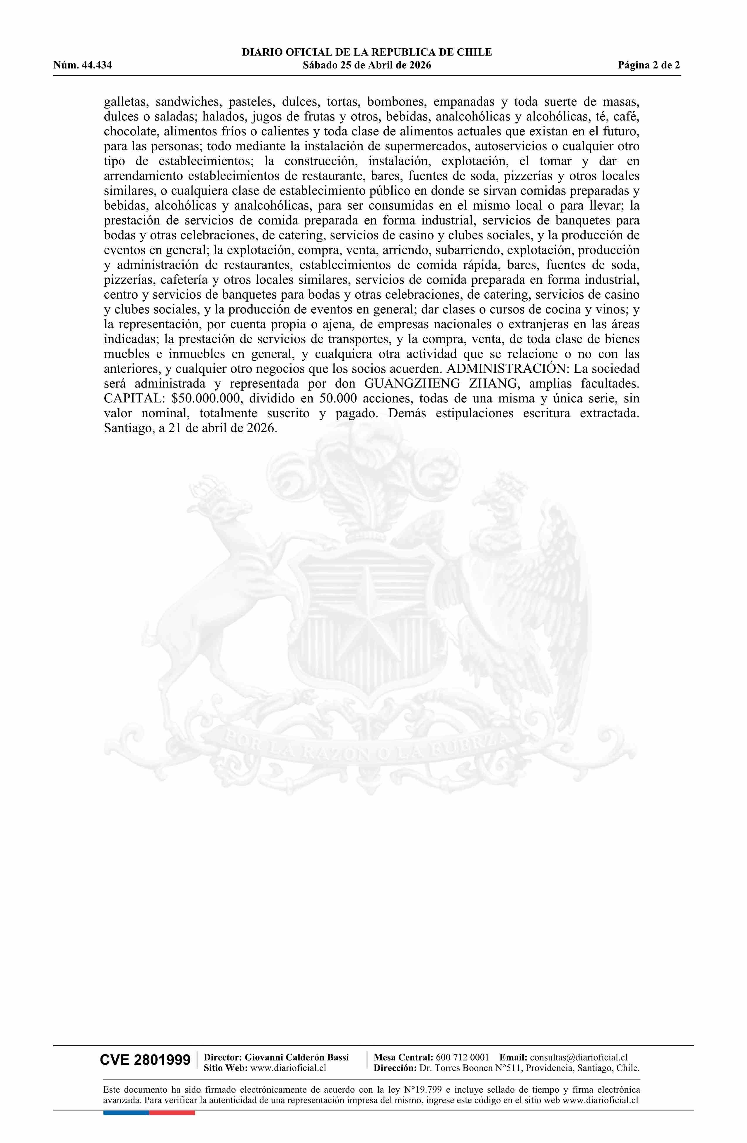 IMPORTADORA Y EXPORTADORA GRAND OCEAN LIMITADA 77.274.893-0* 25-04-2026 Diario Oficial Edición Electrónica |