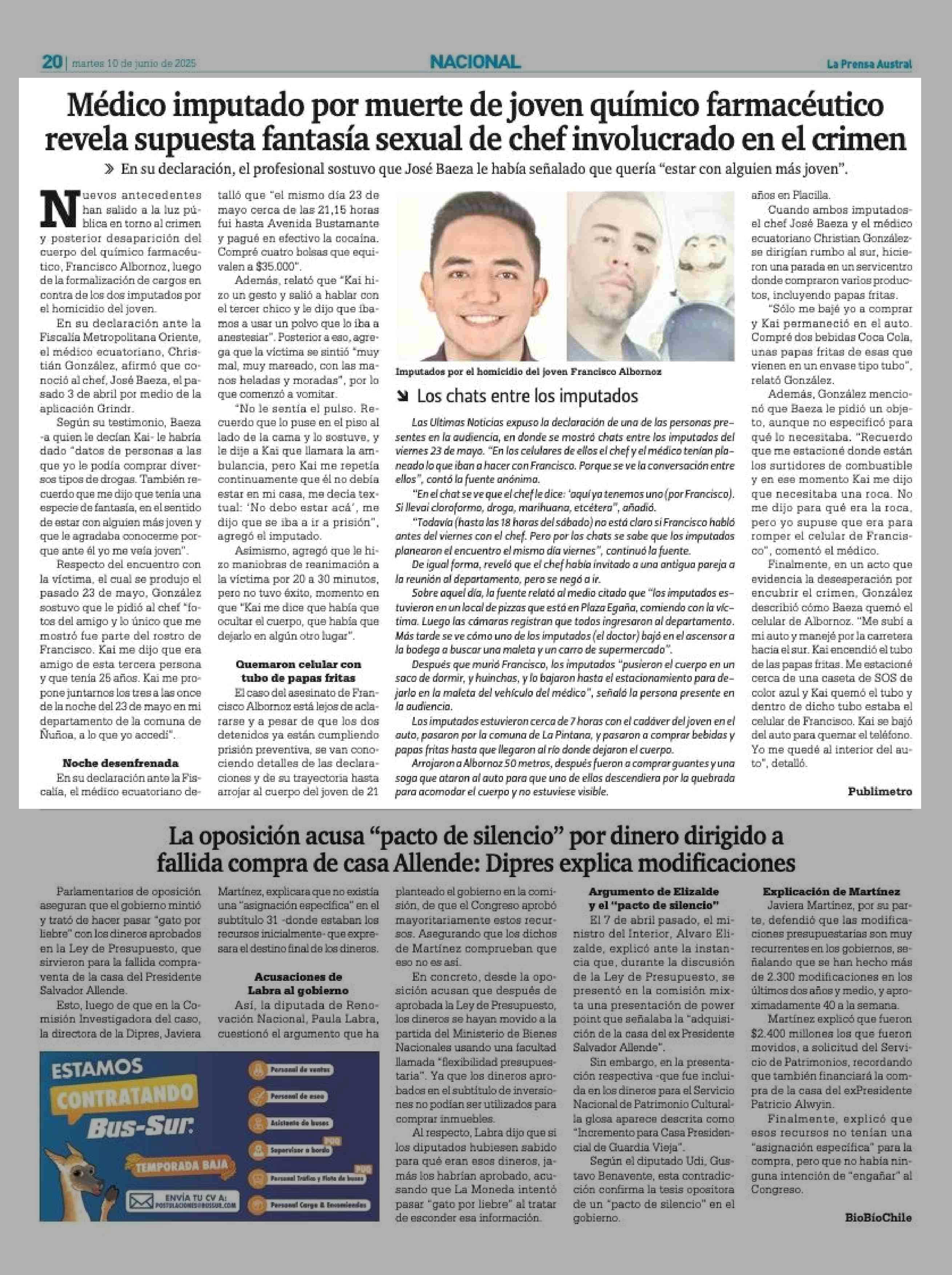 Título: Médico imputado por muerte de joven químico farmacéutico revela supuesta fantasía sexual de chef involucrado en el crimen