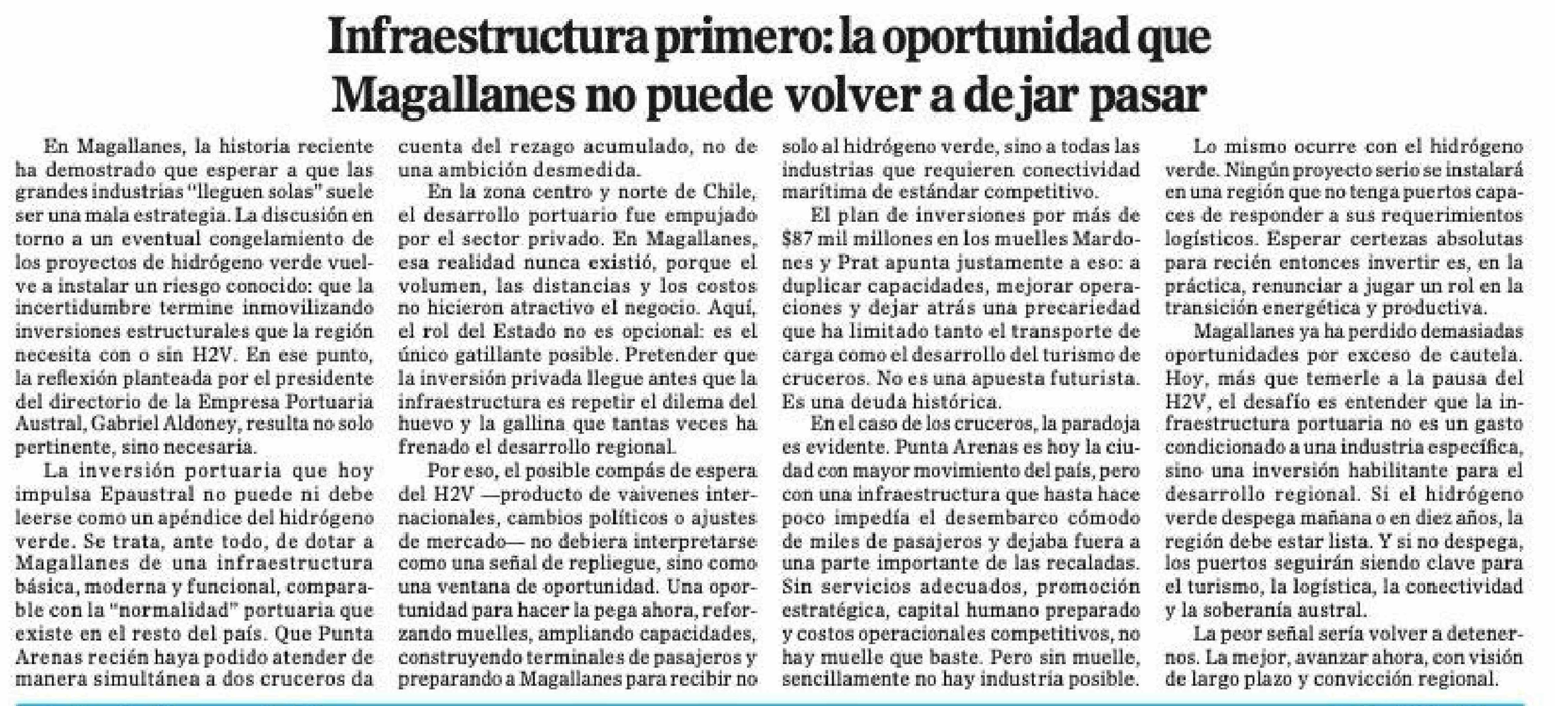 Título: Editorial: Infraestructura primero: la oportunidad que Magallanes no puede volver a dejar pasar