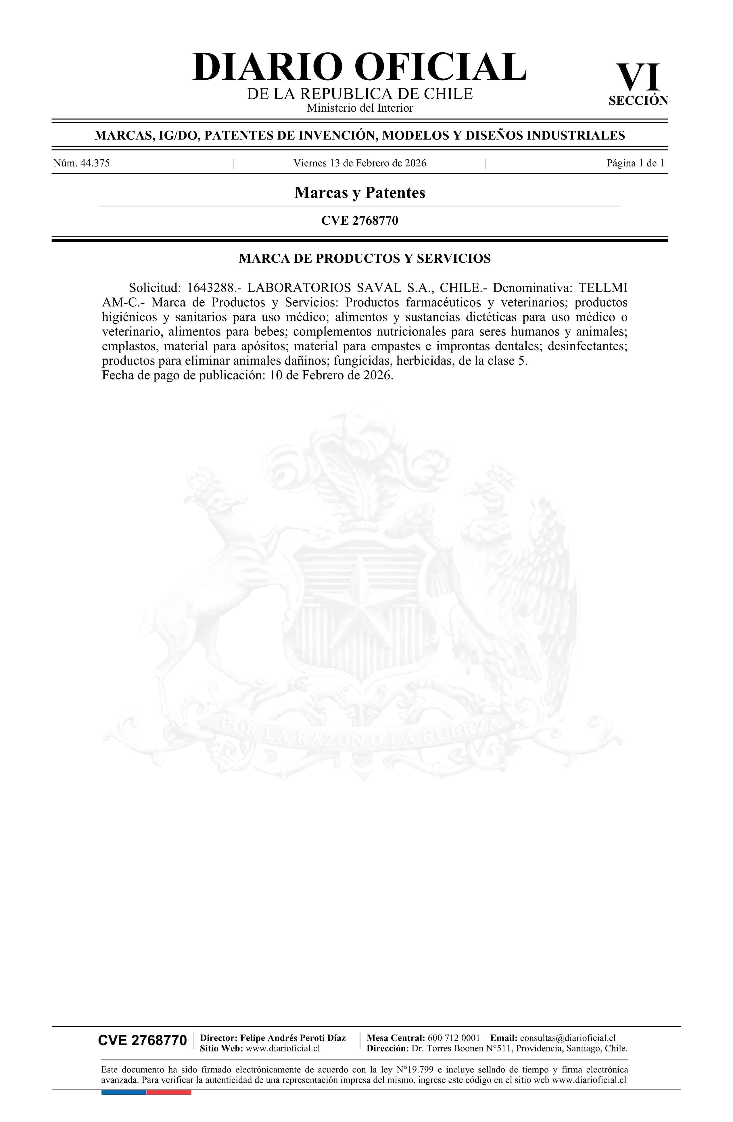 Solicitud número 1643288.- TELLMI AM-C 13-02-2026 Diario Oficial Edición Electrónica |