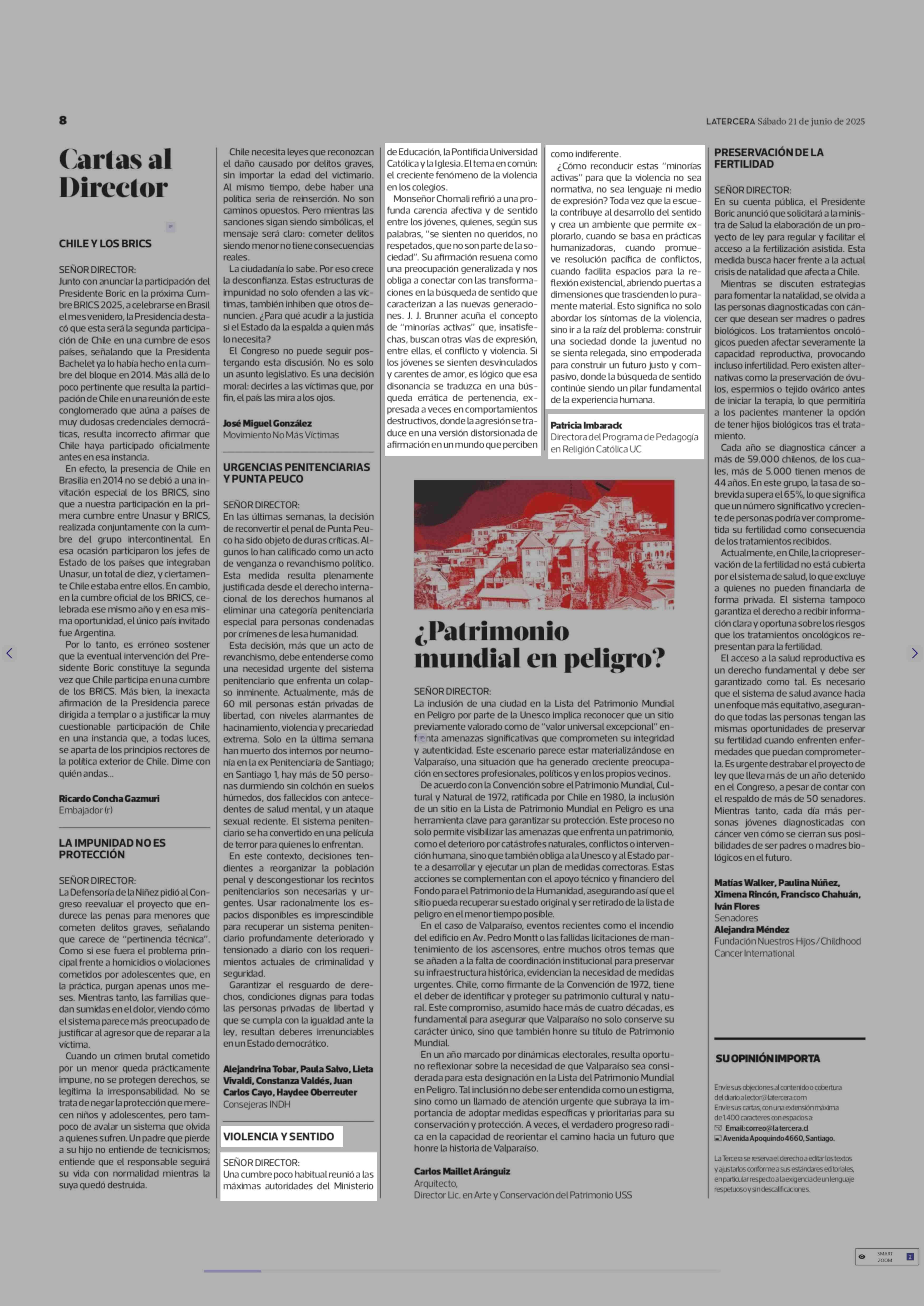 CARTAS: VIOLENCIA Y SENTIDO 21-06-2025 La Tercera |