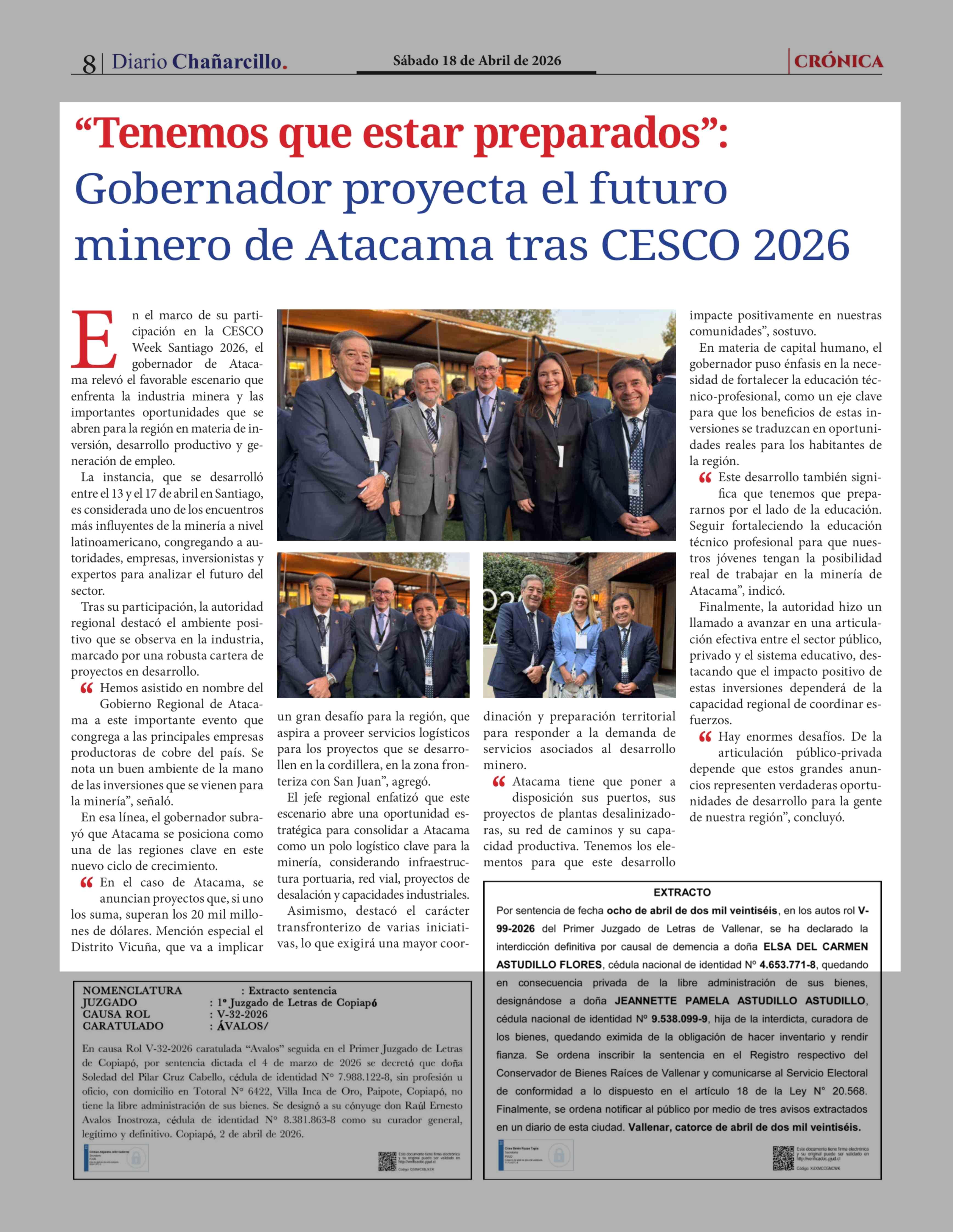 Fecha: 18-04-2026 Sector: Noticia general Región: Región de Atacama
