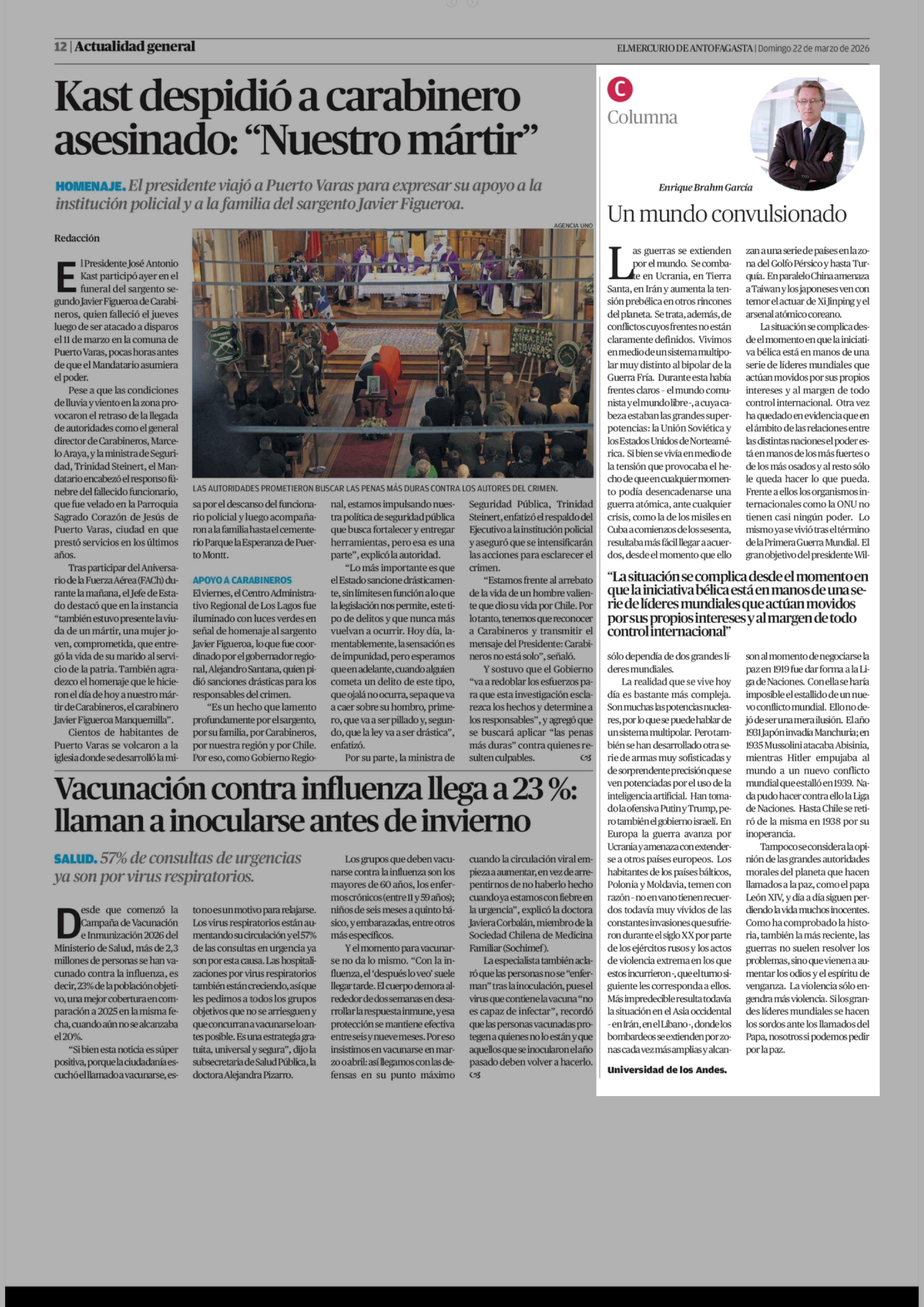 Columnas de Opinión: Un mundo convulsionado 22-03-2026 El Mercurio de Antofagasta |