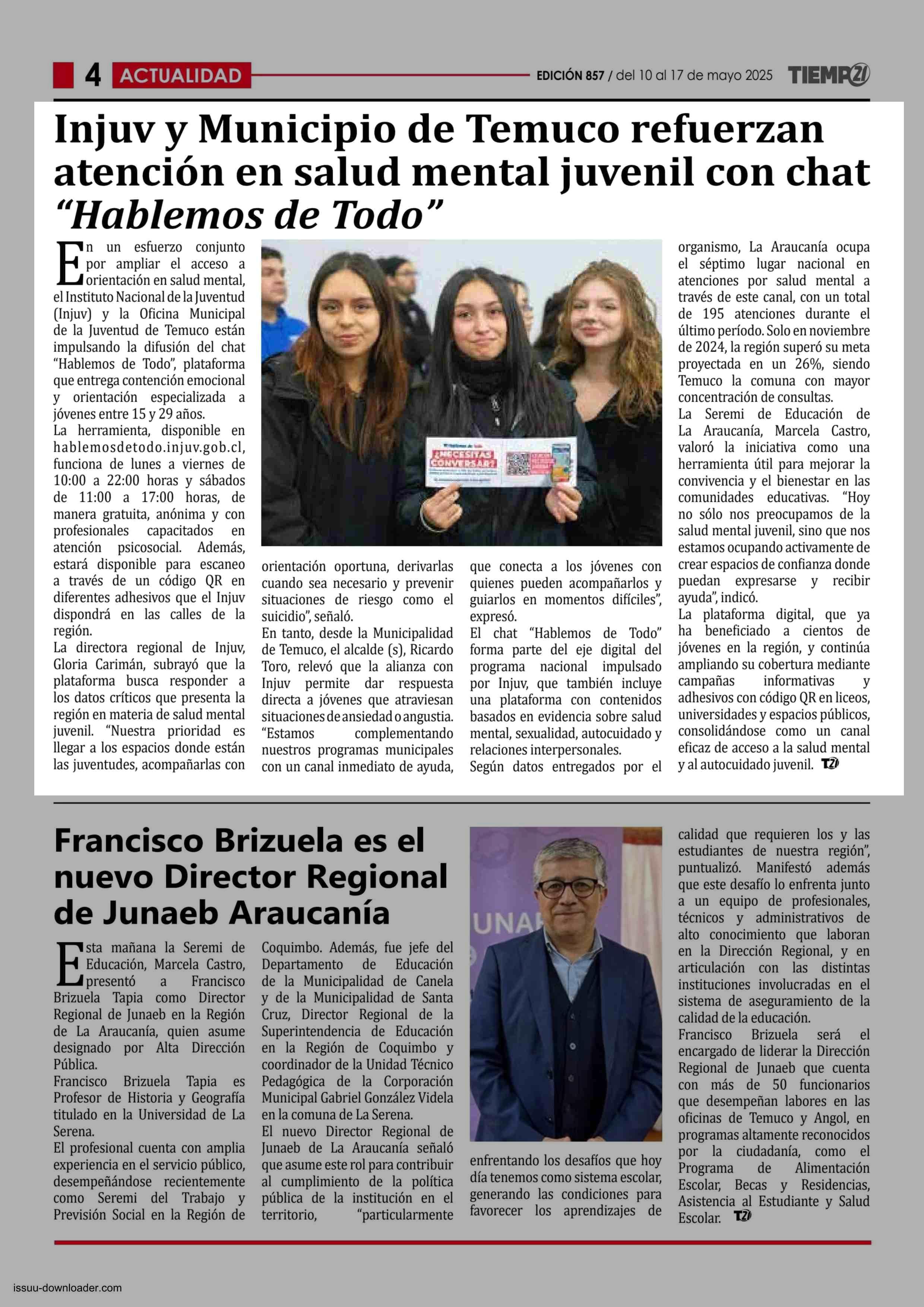 Título: Injuv y Municipio de Temuco refuerzan atención en salud mental juvenil con chat “Hablemos de Todo”
