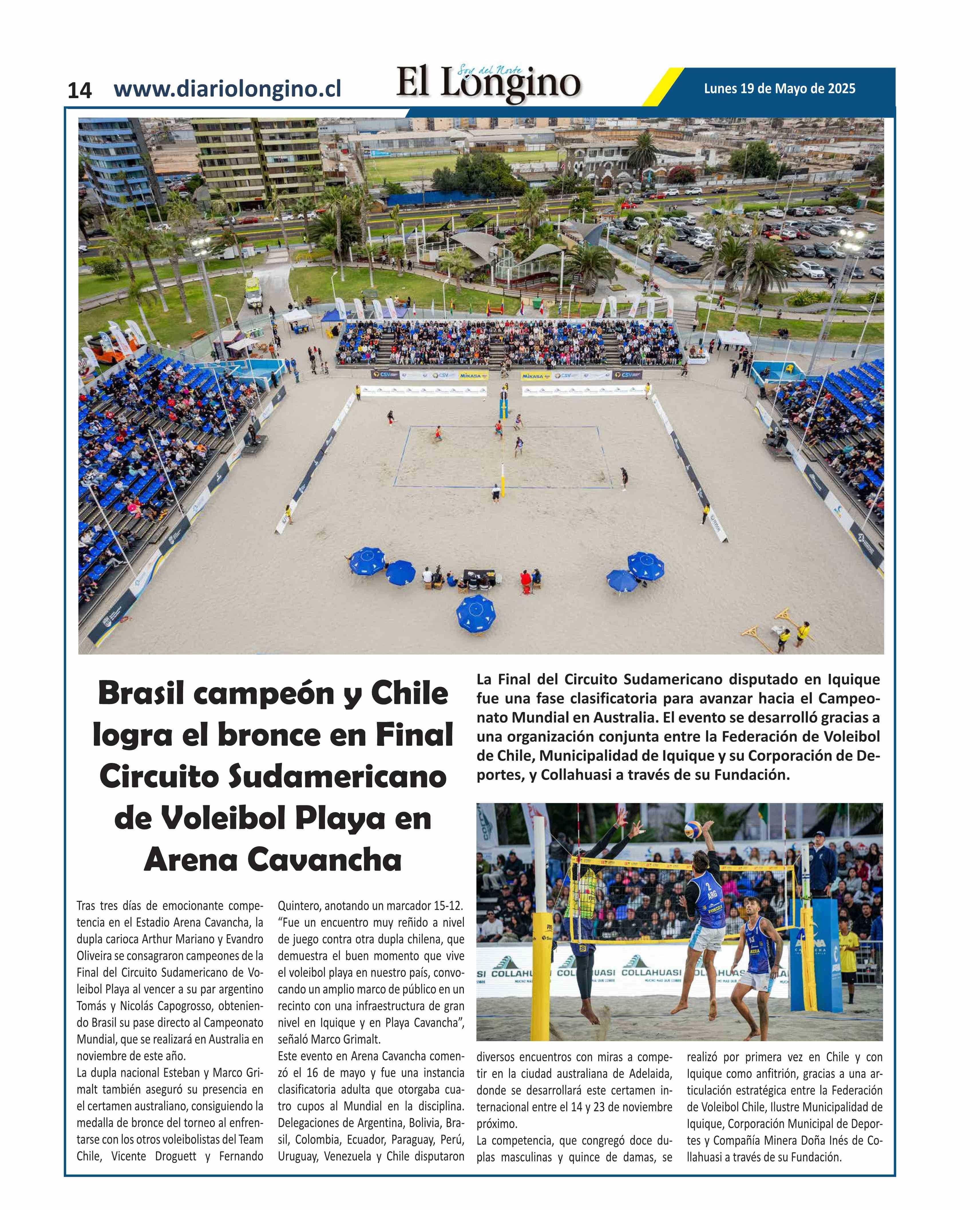 Brasil campeón y Chile logra el bronce en Final Circuito Sudamericano de Voleibol Playa en Arena Cavancha 19-05-2025 El Longino |