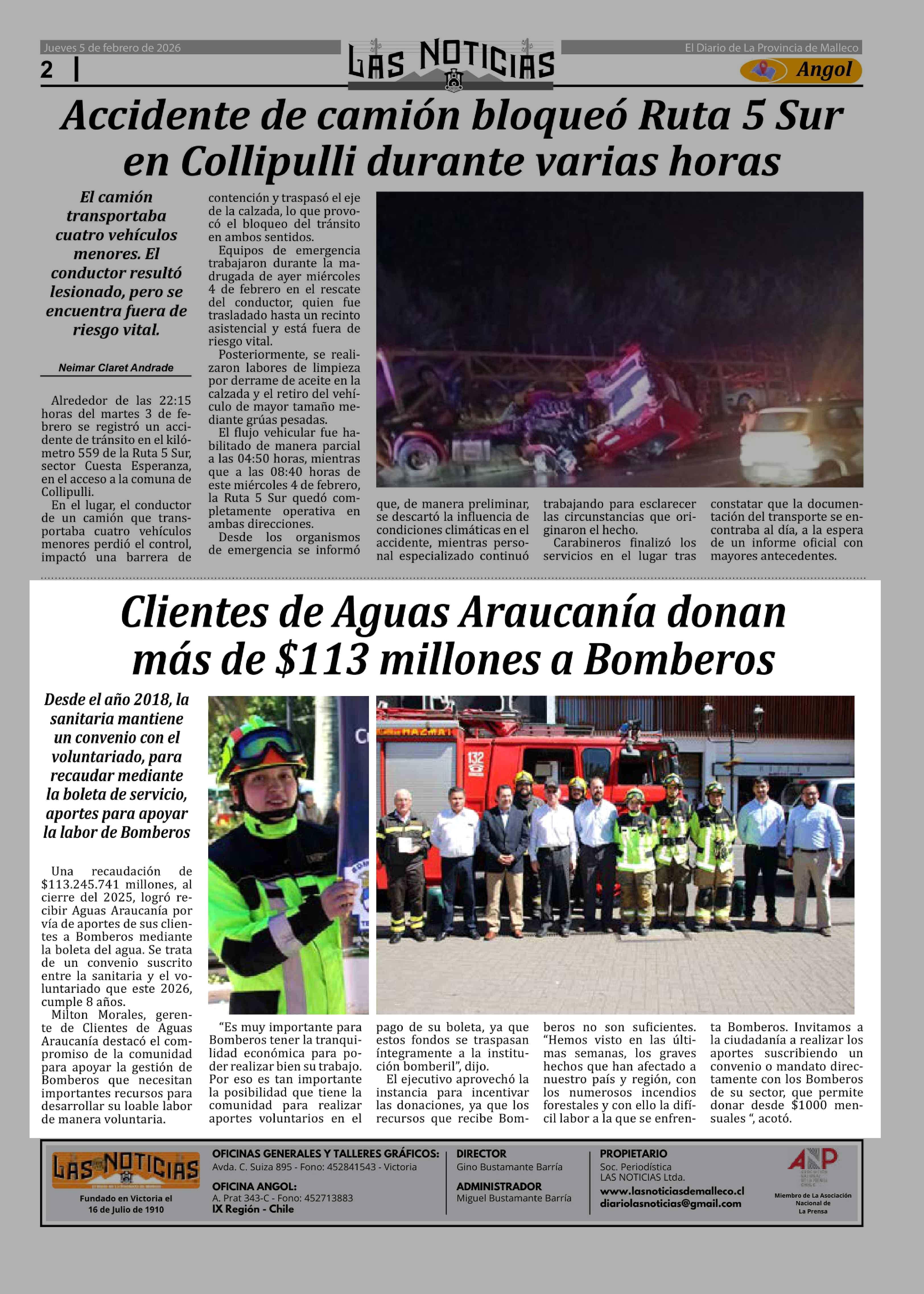 Clientes de Aguas Araucania donan más de $113 millones a Bomberos 05-02-2026 Las Noticias |