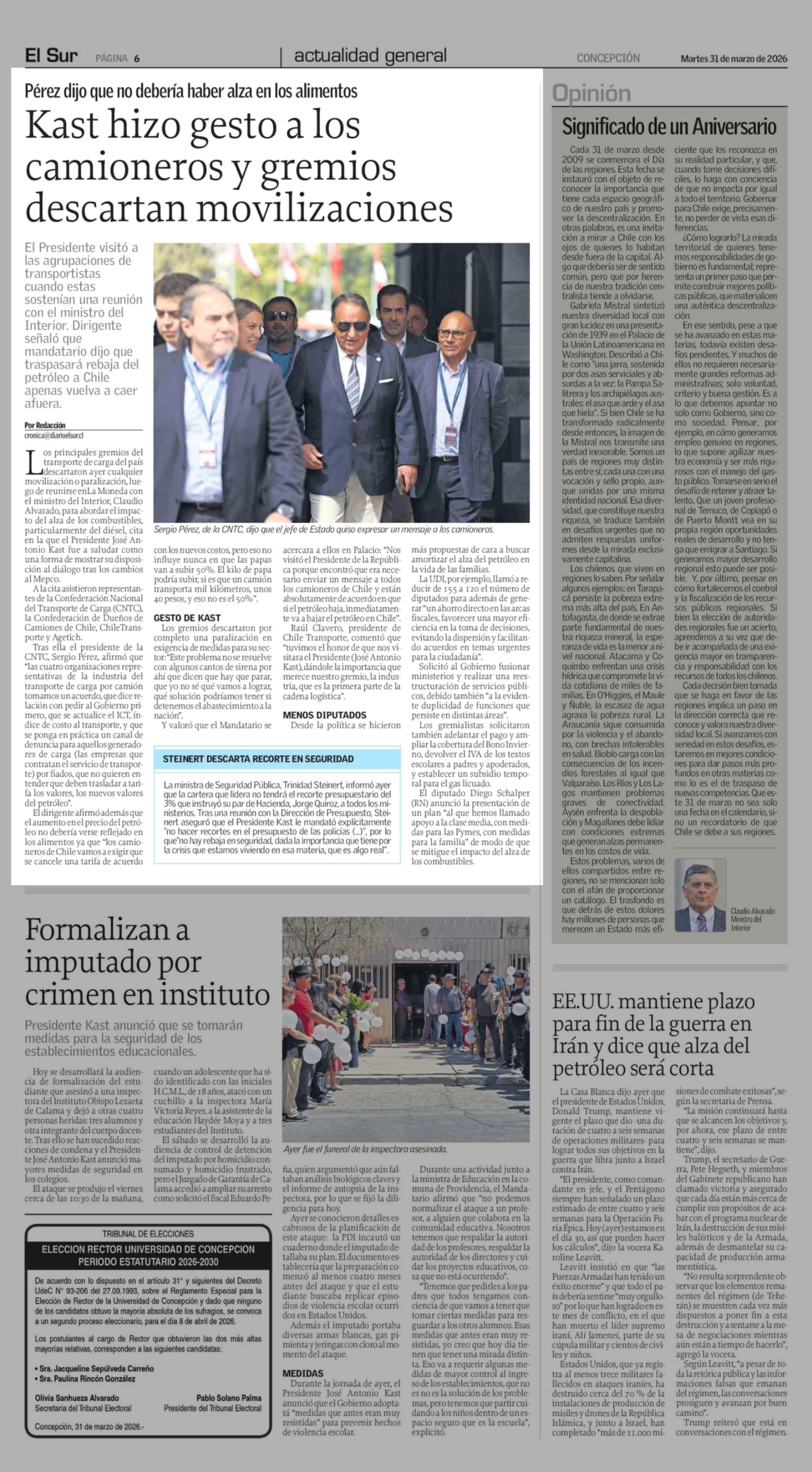 Kast hizo gesto a los camioneros y gremios descartan movilizaciones 31-03-2026 El Sur |
