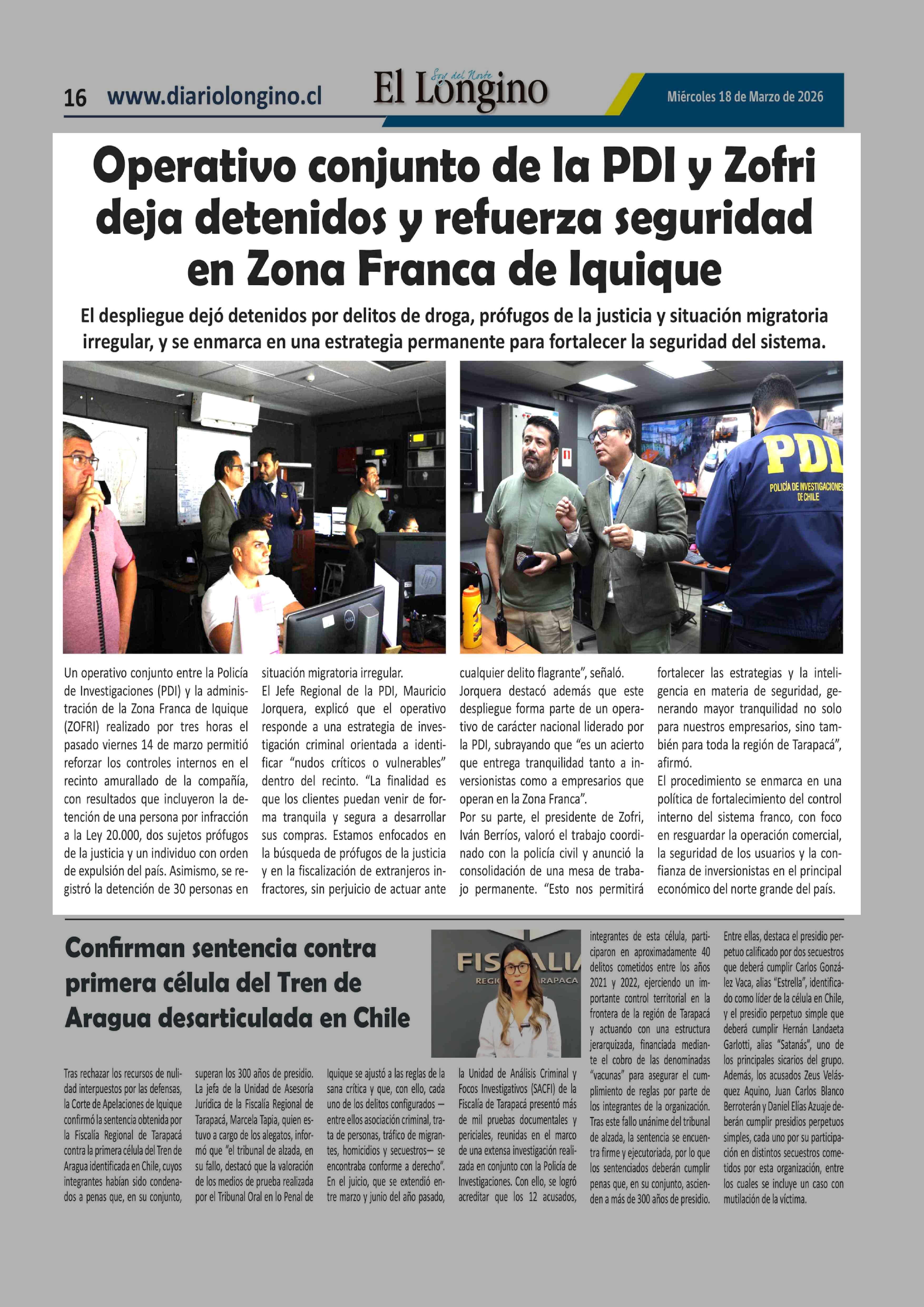 Operativo conjunto de la PDI y Zofri deja detenidos y refuerza seguridad en Zona Franca de Iquique 18-03-2026 El Longino |