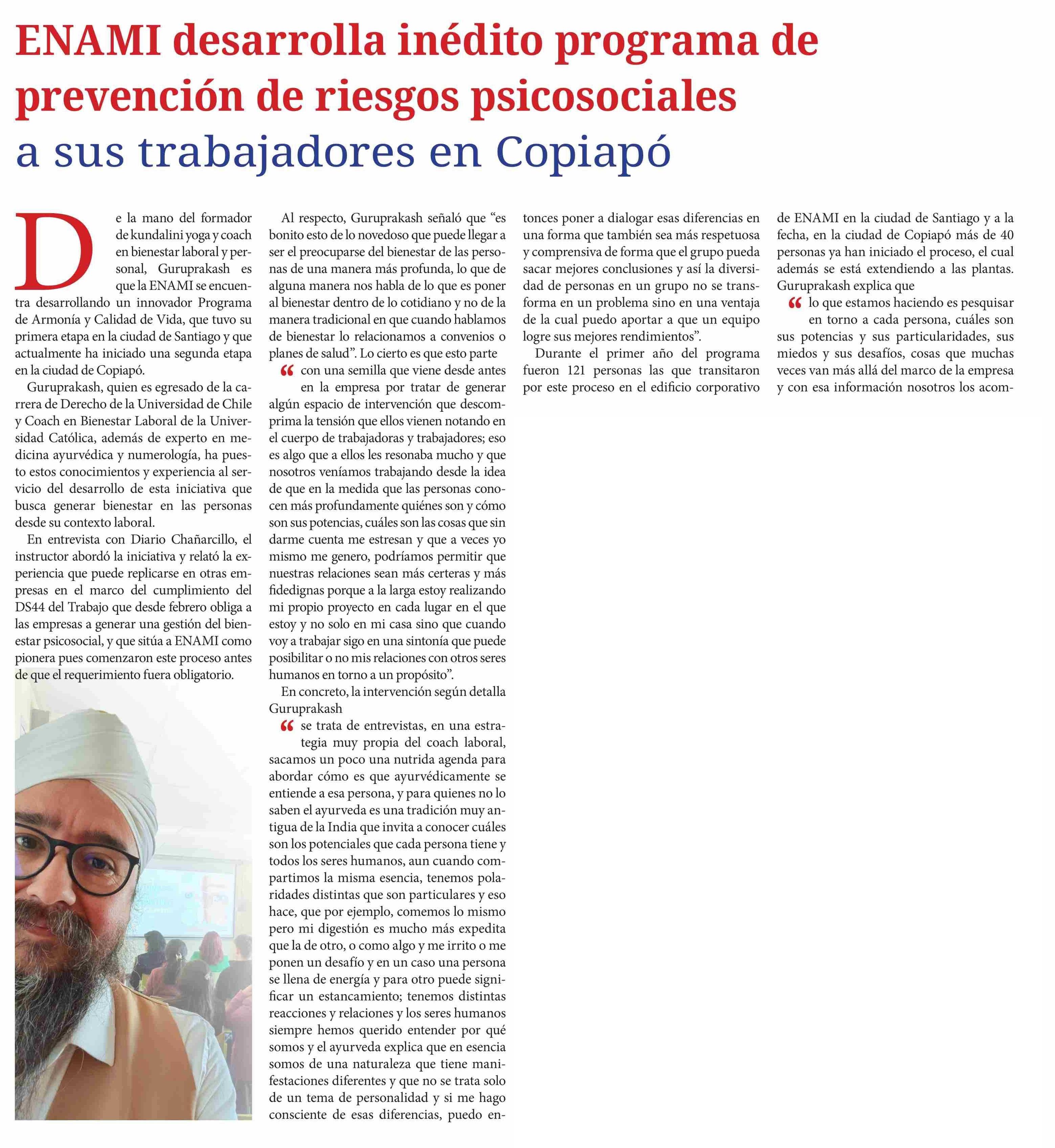 Título: ENAMI desarrolla inédito programa de prevención de riesgos psicosociales a sus trabajadores en Copiapó