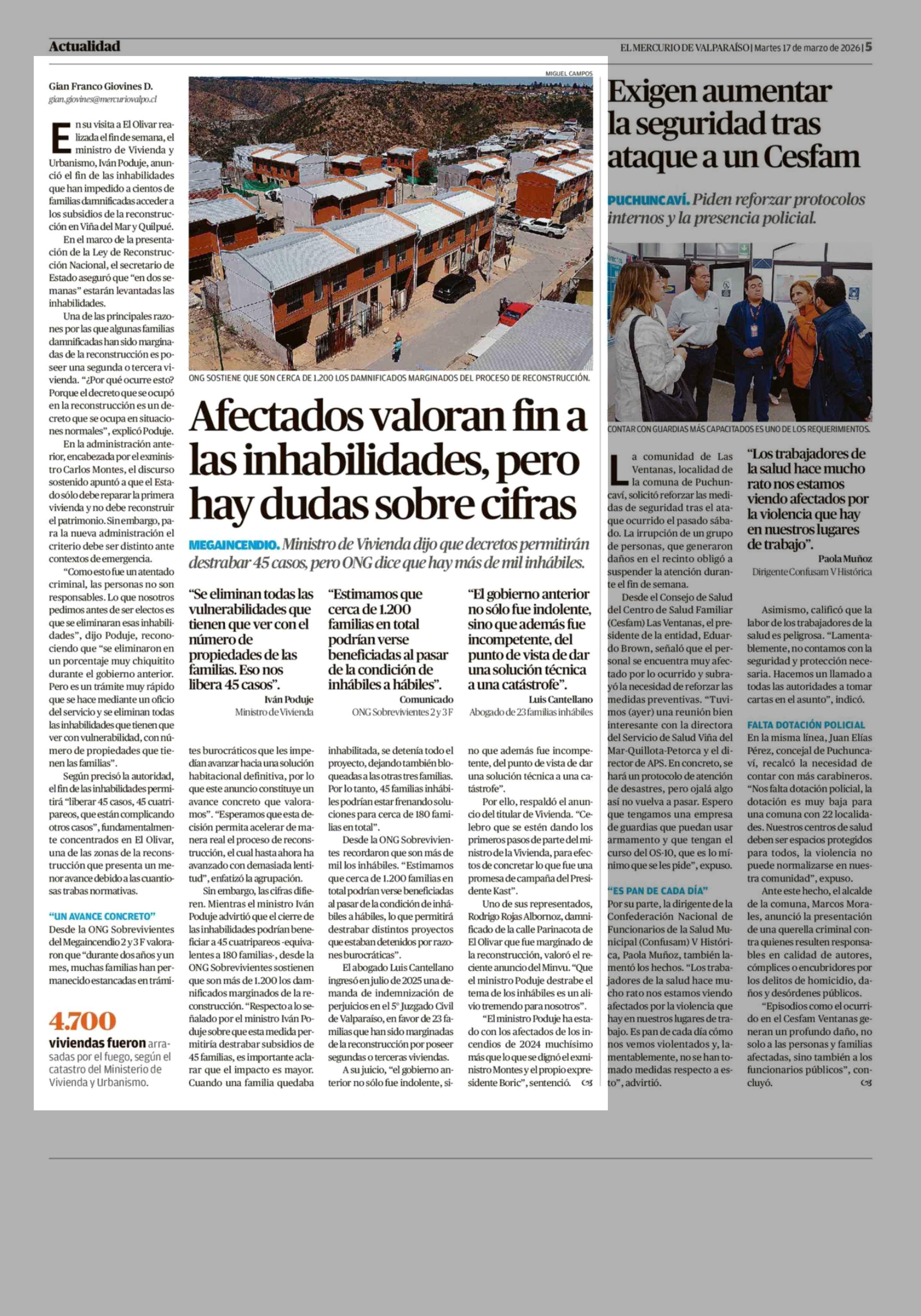 Afectados valoran fin a las inhabilidades, pero hay dudas sobre cifras 17-03-2026 El Mercurio de Valparaíso |