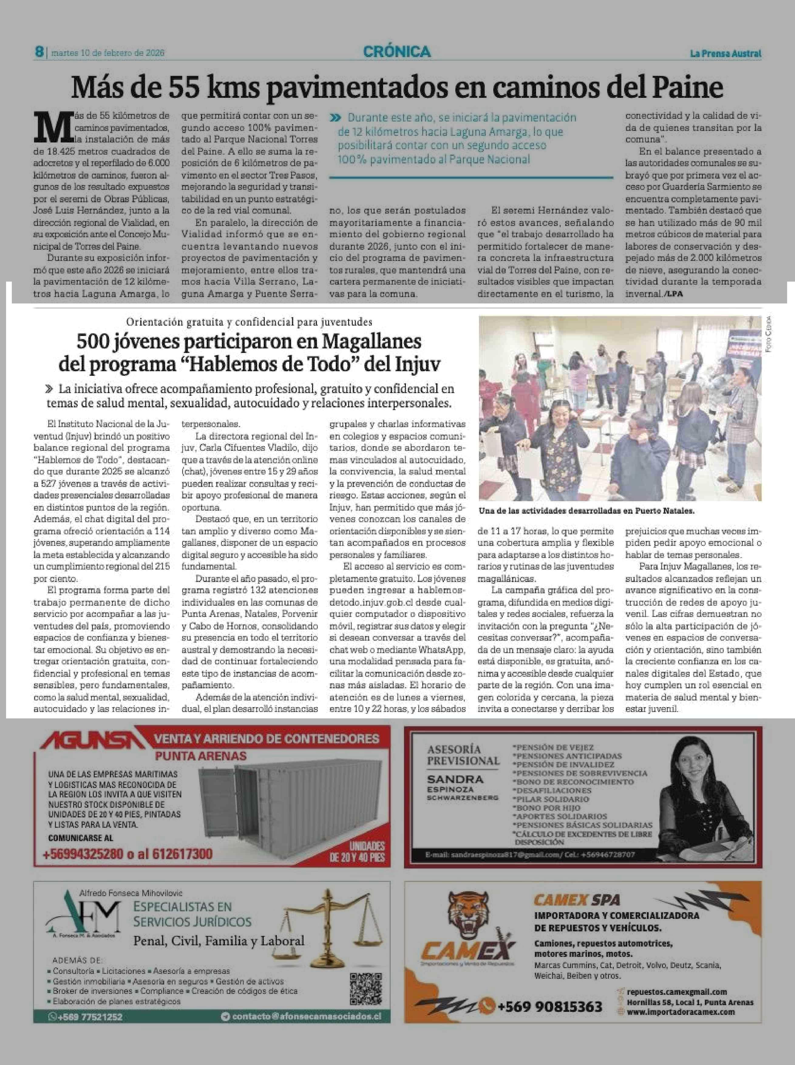500 jóvenes participaron en Magallanes del programa “Hablemos de Todo” del Injuv 10-02-2026 La Prensa Austral |