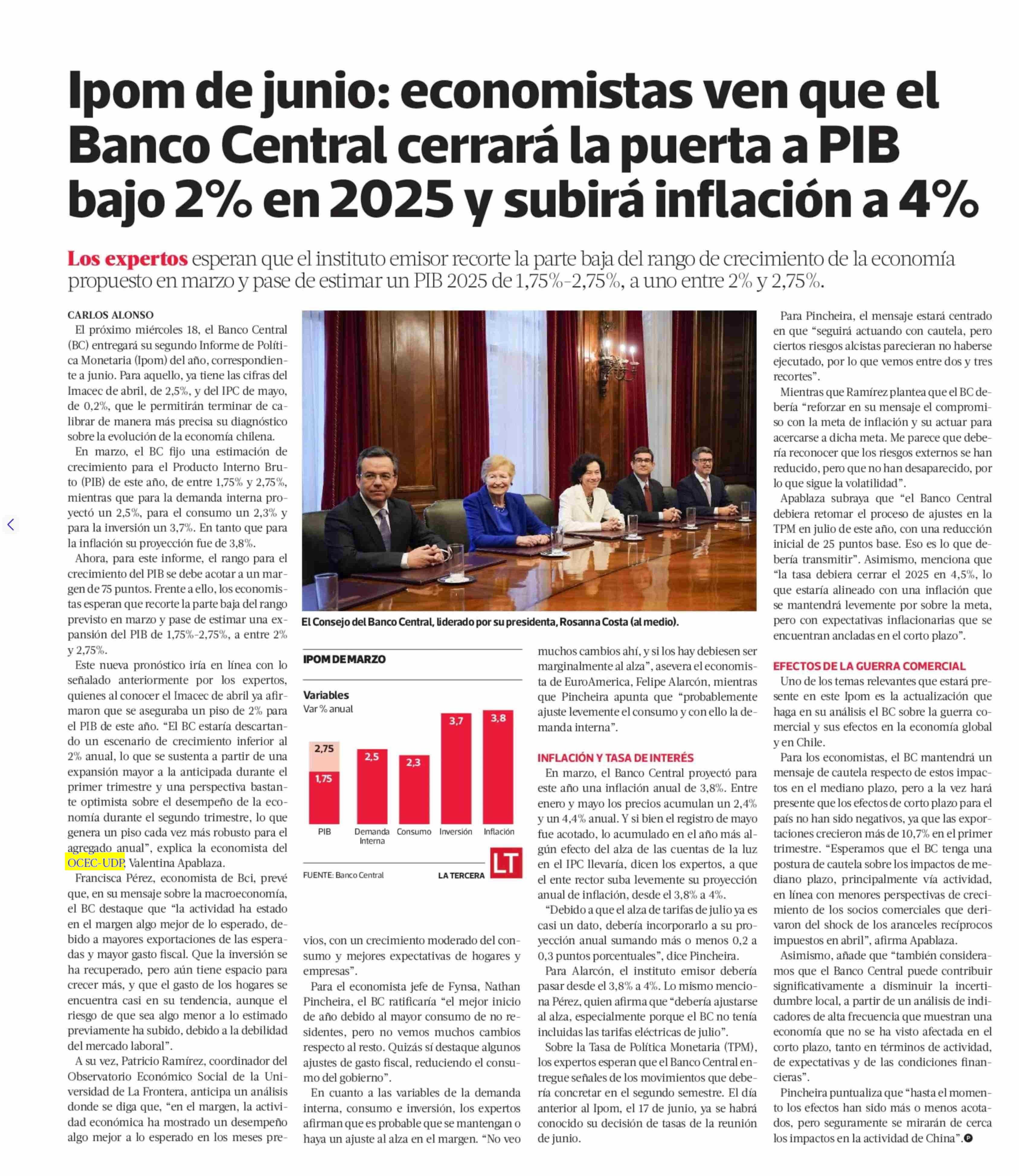 Título: Ipom de junio: economistas ven que el Banco Central cerrará la puerta a PIB bajo 2% en 2025 y subirá inflación a 4%